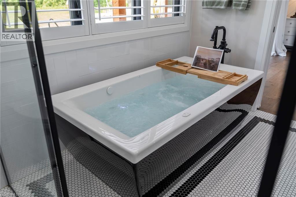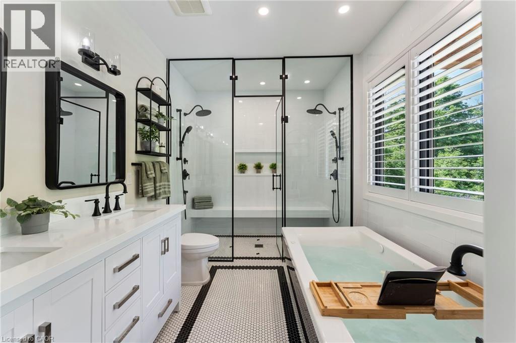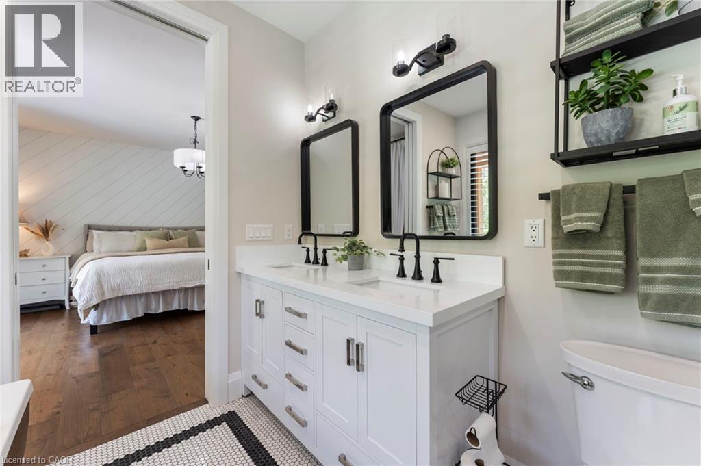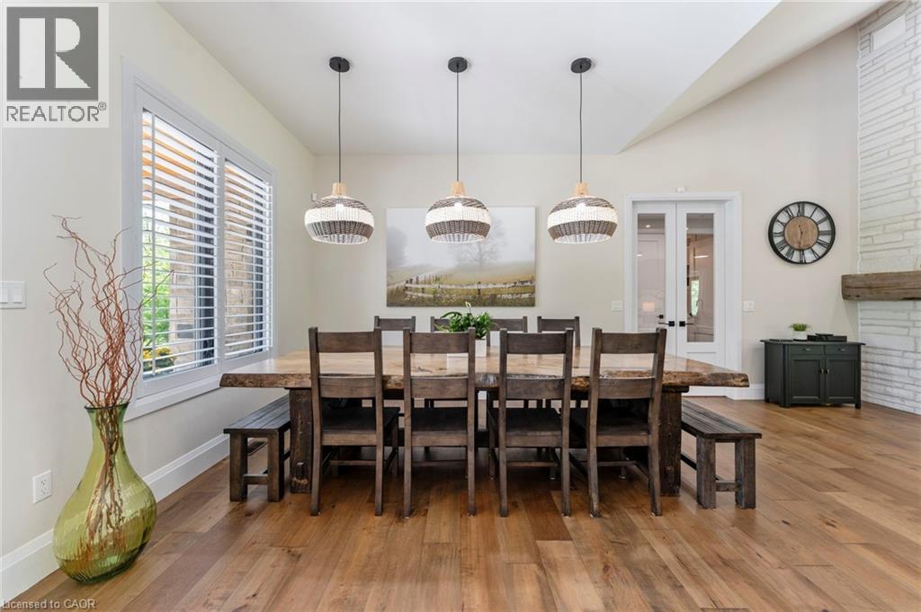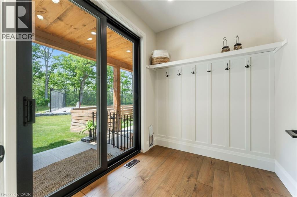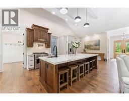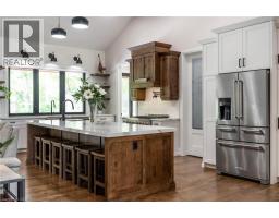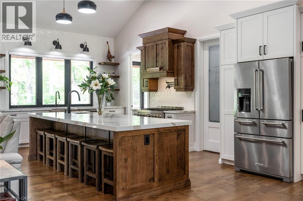 Your dream countryside retreat awaits. Minutes from everyday conveniences, this custom-built modern farmhouse bungalow offers a rare blend of luxury comfort and natural beauty. Set on nearly 6 private acres with breathtaking panoramic views of the Grand River and direct access to the Grand Valley Trail System, this exceptional 2023 built home is thoughtfully designed for multi-generational living, income potential and elevated everyday living. With over 6,000 sqft of beautifully finished space the home features 7 bedrooms 6.5 bathrooms 3 kitchens and 3 laundry areas, ideal for large or blended families. The main level offers two distinct living quarters with 4 bedrooms, 4.5 baths, 2 kitchens, and 2 laundry areas, providing exceptional flexibility for both entertaining and comfortable daily living. The impressive Great Room showcases soaring 16’ vaulted ceilings, while 10’ ceilings in the dining area and 9’ ceilings in the bedrooms create a bright, airy atmosphere throughout. The chef-inspired kitchen anchors the home with a dramatic 10’island, walk-in pantry, and custom cabinetry, perfect for hosting and gathering. Each principal bedroom includes a walk-in closet and private ensuite. The primary retreat offers spa-inspired finishes, serene countryside views, and direct access to the expansive deck. A fully self-contained in-law suite on the main floor includes its own kitchen, living room, bedroom, and 4-piece bath, ideal for extended family or guests. The lower level features a separate entrance to a bright 1-bedroom plus den suite with its own kitchen, bathroom and laundry, along with additional bedrooms a spacious recreation area with wet bar and ample storage. A private 490’ driveway leads to this exceptional property, complete with a tiered covered porch with Douglas Fir beams, fully fenced LED lit sports court, and a heated 3 car garage. A rare offering combining privacy, versatility, and refined country living! Just minutes to shops, schools, and amenities. (id:46441)