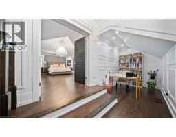 Welcome to this stunningly renovated 4+1 bedroom, 5-bathroom residence offering over 3,000 sq. ft. above grade, complemented by a fully finished basement. Every detail has been thoughtfully curated, beginning with the striking stone exterior and professionally landscaped grounds, complete with a concrete driveway. Step through the double doors into an expansive open-concept main level adorned with rich hardwood floors, timeless wainscoting, and elegant coffered ceilings. The formal dining room flows seamlessly into a grand family room and a chef-inspired kitchen featuring premium appliances, quartz countertops, and a convenient butler’s pantry with a secondary fridge. Ascend the wrought iron staircase to the second floor, where you’ll find three spacious bedrooms, three full bathrooms, and a practical laundry room. A cantilever balcony at the end of the hallway adds a touch of Parisian charm. The third level is dedicated to the luxurious primary suite, complete with a spa-like ensuite and a custom-designed walk-in closet with built-in cabinetry—truly a dream retreat. Just outside the suite, a versatile bonus space awaits, ideal for a home office, nursery, or reading nook. The fully finished basement is designed for relaxation and wellness, featuring luxury vinyl plank flooring, a cozy recreation area, a fully equipped sauna, and a gym. The tandem garage comfortably accommodates two vehicles, with soaring ceilings that allow for the future addition of a car lift. Perfectly located near schools, shopping, recreational facilities, dog parks, Valley Park, and major highways, this exceptional home combines luxury, comfort, and convenience. (id:46441)