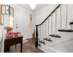 Elegance, comfort, and family-friendly charm; welcome to your forever home in the heart of Belleville. Set on a lovely, tree-lined street in one of the towns most accessible neighbourhoods, this beautifully updated 4-bedroom home blends timeless character with modern convenience. Just a short walk to Lake Ontario, the marina, parks, and downtown shops and restaurants, the location offers a lifestyle of ease and connection perfect for families. Step onto the large, covered porch, with its charming swing, original entrance door, stained glass transom, and views of lush gardens, and feel instantly at home. The expansive side yard is larger than most backyards in town and could easily be fenced for privacy. There's ample room for children to play or to create your dream outdoor space: pool, play structure, garden, or all three. Inside, the freshly painted home is truly move-in ready. The formal living and dining rooms feature original plaster crown moulding and a gorgeous fireplace, ideal for gatherings and celebrations. The cozy main floor family room offers space for playtime, TV nights, and everyday living. The large, light-filled primary bedroom includes a walk-in closet and private ensuite. Three additional upstairs bedrooms offer flexibility for families, guests, or a home office. An unspoiled loft with over 800 sq ft of space presents endless possibilities: teen lounge, games room, yoga studio, or creative space. All major systems including electrical and plumbing have been updated, offering peace of mind. A solid fieldstone foundation reflects the homes enduring quality, while a detached double garage adds storage and functionality. Best of all, the home is beautifully furnished and everything you see is available for purchase, making your move seamless and stylish. Whether you're starting a new chapter or growing your family, this exceptional home offers the space, style, and location to live your best life. (id:46441)