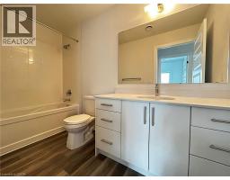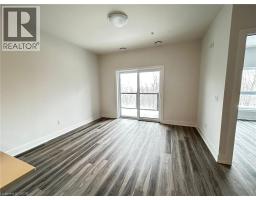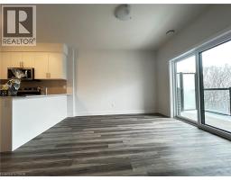 Welcome to 1100 Lackner unit 421: A brand-new, airy 1-bedroom, 1-bathroom condo located in the highly desirable Lackner Ridge community of Kitchener. Thoughtfully designed and move-in ready, this stylish unit offers a spacious open-concept layout featuring 9-foot ceilings, abundant natural light, and elegant laminate flooring throughout. The contemporary kitchen is equipped with quartz countertops and stainless steel appliances, ideal for both daily living and entertaining. The inviting living and dining area walks out to a large private balcony overlooking a serene, tree-lined walking trail, perfect for relaxing outdoors. The private primary bedroom includes a generous closet and access to a full bathroom. Added convenience includes in-suite, full-size laundry located in a dedicated laundry room. This unit comes with one surface parking space and a secure locker on the third floor for extra storage. Residents can enjoy comfort-style amenities in a welcoming building, including a gracious lobby, luxurious lounge, elegant party room, visitor parking, and shared sitting areas. Ideally situated just minutes from major shopping destinations such as Walmart, Costco, Canadian Tire, and Real Canadian Superstore, and within walking distance to Food Basics, Rexall, and Dollarama. Easy access to Highways 7, 8, and 401, public transit, nearby bus routes, the GO Station, and close proximity to Wilfrid Laurier University, University of Waterloo, and Conestoga College make this location exceptionally convenient. This condo offers excellent opportunity for professionals or couples seeking quality living in a prime location. Book your showing today! (id:46441)