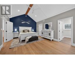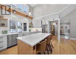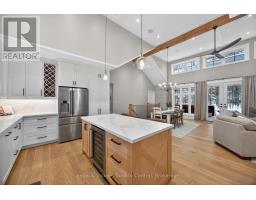 JOIN US FOR MORNING COFFEE AND A TOUR! Sunday May 3, 10-12. Executive Country Living - Just 7 Minutes South of Gravenhurst. Moments to Hwy 11 for seamless GTA access, yet privately set on a wooded 1-acre lot, this recently completed custom 5-bedroom residence delivers refined Muskoka design with exceptional build quality and modern efficiency. The open-concept main level features wide-plank white oak floors, vaulted v-groove ceilings with exposed beams, and expansive dormers that flood the space with natural light. A striking floor to ceiling 42" gas fireplace anchors the living area, with walkout to a covered rear porch and hot tub for effortless year-round enjoyment. The custom kitchen was designed to impress - quartz surfaces, premium appliances including a 36" gas range, generous island seating, wine storage, and a hidden walk-in pantry with secondary refrigerator offer both beauty and function. The primary suite is a private retreat with vaulted ceilings, walk-in closet, and spa-inspired ensuite featuring heated floors and an oversized glass shower. Two additional main-floor bedrooms provide flexibility for family or guests. The fully finished lower level with 9.5' ceilings adds two large bedrooms, full bath, recreation space, and dedicated gym/ office - ideal for growing families or professionals working from home. Built for longevity and performance with ICF foundation, insulated slab, ZIP system sheathing, R-60 insulation, high-efficiency mechanicals, HRV system, whole-home water filtration, and an 18 KW generator. An oversized heated 2-car garage and spacious, thoughtful mud room offer daily convenience. A detached shop with 100-amp service, washroom, in-floor heat, and car-lift potential is perfect for collectors, entrepreneurs, or hobbyists. Private. Polished. Purposefully built. Homes of this calibre - so close to town yet offering complete luxury - rarely become available. Book your private showing before spring momentum carries it away. (id:46441)