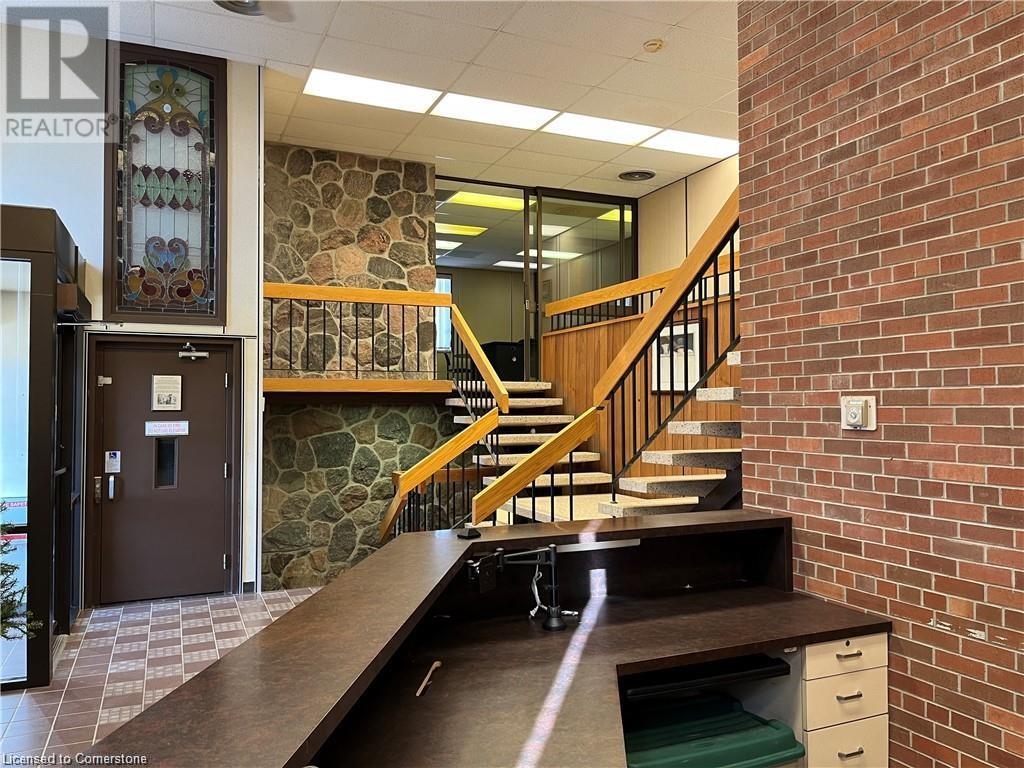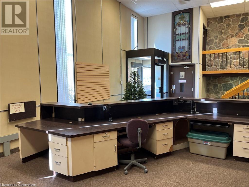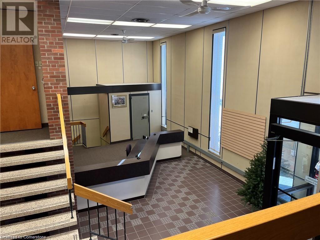 Former municipal building. New flat roof 2025. Main reception area, includes safe, open staircase, terrazzo flooring, brick and field stone feature walls. Upper level has 5 offices, board room, event room, waiting area and storage. Lower level has 5 offices, board room/mixed use space and several storage spaces. 5 washrooms, and parking for 10 cars, wheelchair accessible with automatic doors, and elevator/lift system. Natural gas forced air heat and central air. Zoned Commercial Downtown. Square footage of 7,293 reflects total of upper, main reception and lower floors (id:46441)