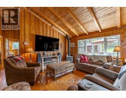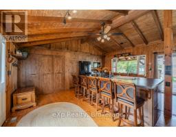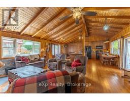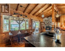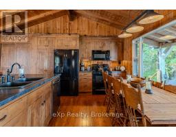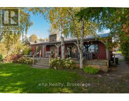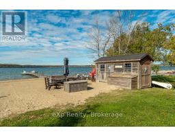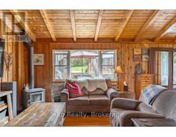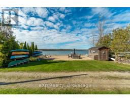 Discover your escape to this immaculately maintained, elegantly rustic, fully renovated 4 season property located directly on the shoreline of Colpoys Bay (Georgian Bay) just 5 minutes outside of the town of Wiarton, 20 minutes to Sauble Beach, 35 minutes to Southampton/Port Elgin, 50 min to Tobermory and a central gateway to the stunning Bruce Peninsula! Nestled on a flat, tree filled, private beachfront lot, this property is perfect for anyone looking to enjoy a potential turnkey waterfront purchase. Featuring a sandy walk out beach, a locally handcrafted, docking system that can accomodate a 26' boat and seadoos. Complete with Adirondack chairs and tables, a 10 seating beach picnic table and umbrella, a Beach House that homes a full size refrigerator and all of the desired outdoor games and paddling supplies. There is a beach Fire pit and 2 racks that hold 2 canoes, 4 kayaks and 2 Paddle boards. The lot provides a safe and enjoyable spot for little ones to splash and play, while hosting a pristine swimming and boating experience for all ages The marina and public boat launch are 5 minutes away. Close to golf courses, the Bruce Caves and Trail, the Grotto and surrounding ATV/snowmobile trails.This special location hosts full sun exposure with lots of areas to also enjoy shade, beach frontt, breathtaking sunsets and incredible views of the Niagara Escarpment.It includes the main Home, The Beach Cabin, The Beach House, The Fort and a Utility cabin. All buildings have insulated steel roofing. There is also strategic privacy fencing throughout the tree lined lot.The Cabin 105 sqft. The Fort ~ 2 levels 160sqft. Beach House 90 sqft. Utility Cabin 90sqft. Cedar and Pine Construction- High Celings- 2 bedrooms- Large Open concept kitchen and living room. It has been completely transformed with high-quality upgrades that combine modern comfort with timeless charm. There is a stunning stone gas fireplace and a functional zero clearance wood-burning stove. (id:46441)