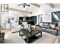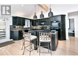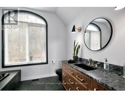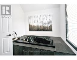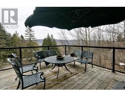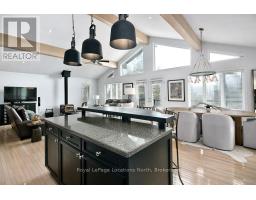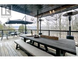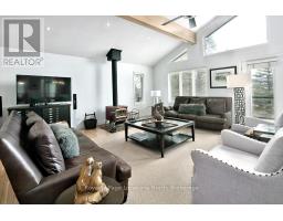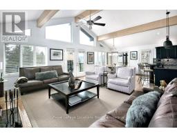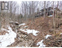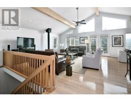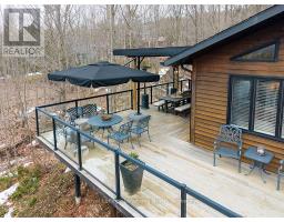 Nestled on a serene, private lot where the sound of the creek provides a constant soundtrack to daily life, 112 Amik Court is a masterclass in custom chalet design. This residence utilizes a thoughtful reverse floor plan to maximize natural light and elevate your perspective over the valley floor. The heart of the home is an expansive open-concept living area anchored by a classic Spectrum wood-burning stove and adorned with Troy lighting. The custom-made maple cabinetry features both upper and lower integrated lighting, highlighting the granite surfaces and designer black appliances. Transition seamlessly to the outdoors via the massive entertaining deck, wired for sound and illuminated by elegant Curry and Hinkley fixtures-an ideal setting for hosting amidst the Niagara Escarpment's natural beauty. The primary suite is a private haven, offering expansive views of the creek through beautiful corner windows and direct deck access via French doors. The bath is a spa-like retreat featuring a walnut vanity, honed marble-granite counters, slate flooring, and a deep soaking tub. Throughout the home, the craftsmanship is evident, from the "hub and spoke" architecture to the one-of-a-kind bannister hand-forged by a local artisan. The main level is designed for the four-season enthusiast. Custom-laid Indian Autumn slate and limestone detailing surround a built-in electric fireplace, while top-of-the-line Berber carpeting adds warmth to the spacious bedrooms. After a day on the trails or slopes, unwind in the professional-grade 8-person dry sauna. This level also features a sophisticated scotch and wine tasting room and a secondary catering kitchen-perfect for preparing harvests or hosting extended family. With a generous walk-in mudroom and ample storage, this is more than a home; it is a lifestyle vessel in Ontario's most coveted recreational corridor. (id:46441)