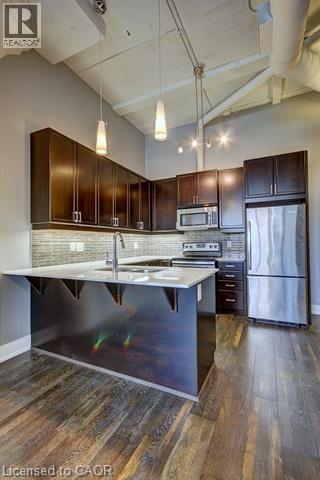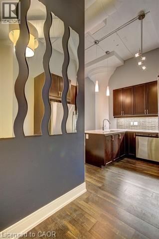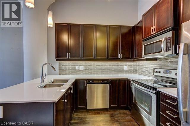 This beautifully appointed condo unit features upgraded counter tops, engineered hardwood flooring, updated light fixtures, soaring ceilings, huge windows for loads of natural light, and in-suite laundry. You'll enjoy hosting friends and family with all the gorgeous amenities this building has to offer, including the generous sized roof top patio and its spectacular views. You’re steps from downtown Kitchener and the LRT, and close to shopping, restaurants, tech offices, trails, and Victoria Park. Don't miss your opportunity to call this place your home. (id:46441)