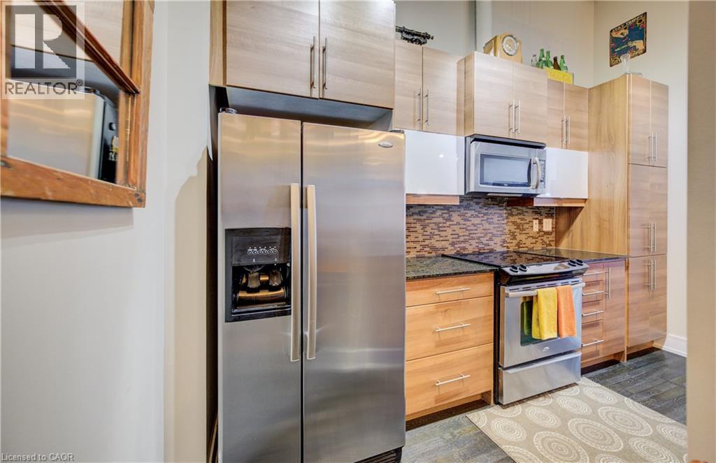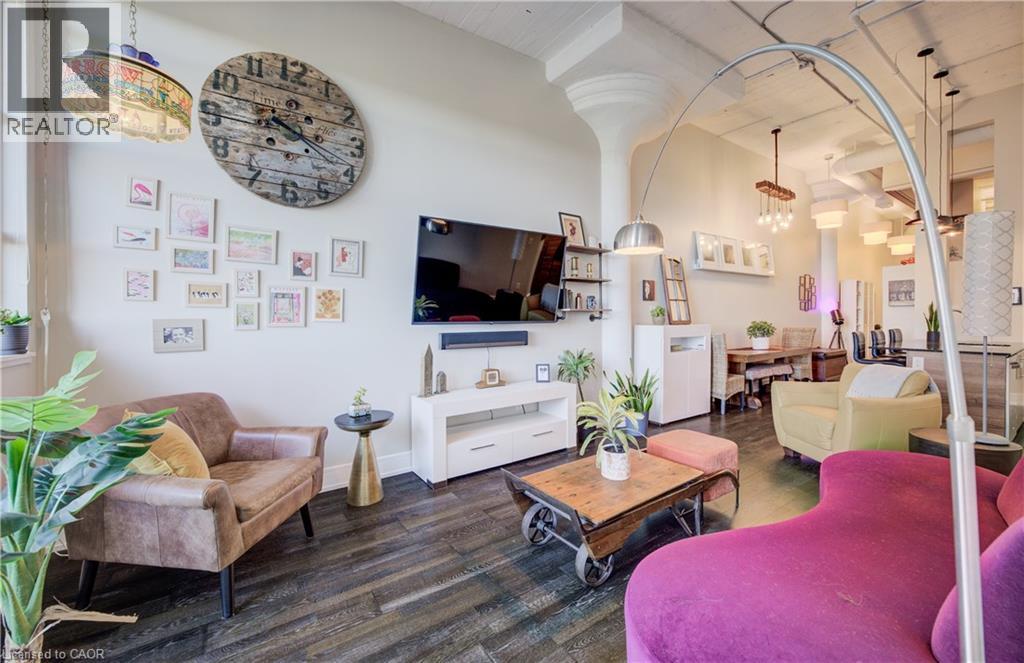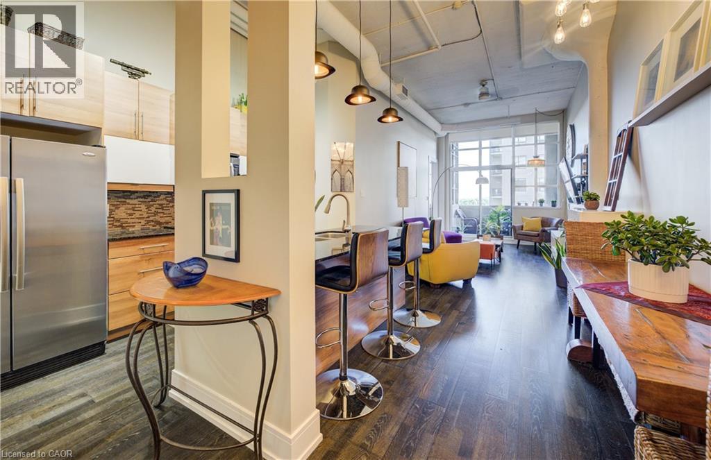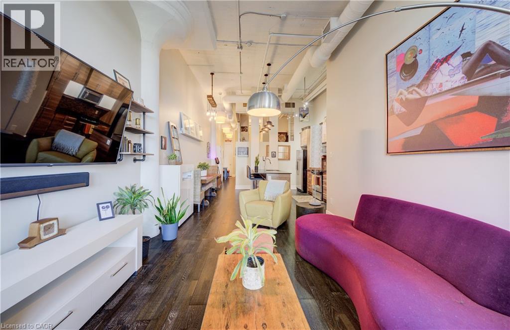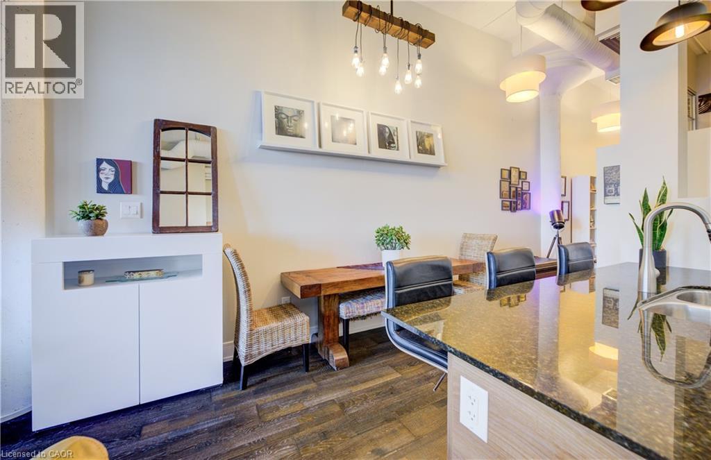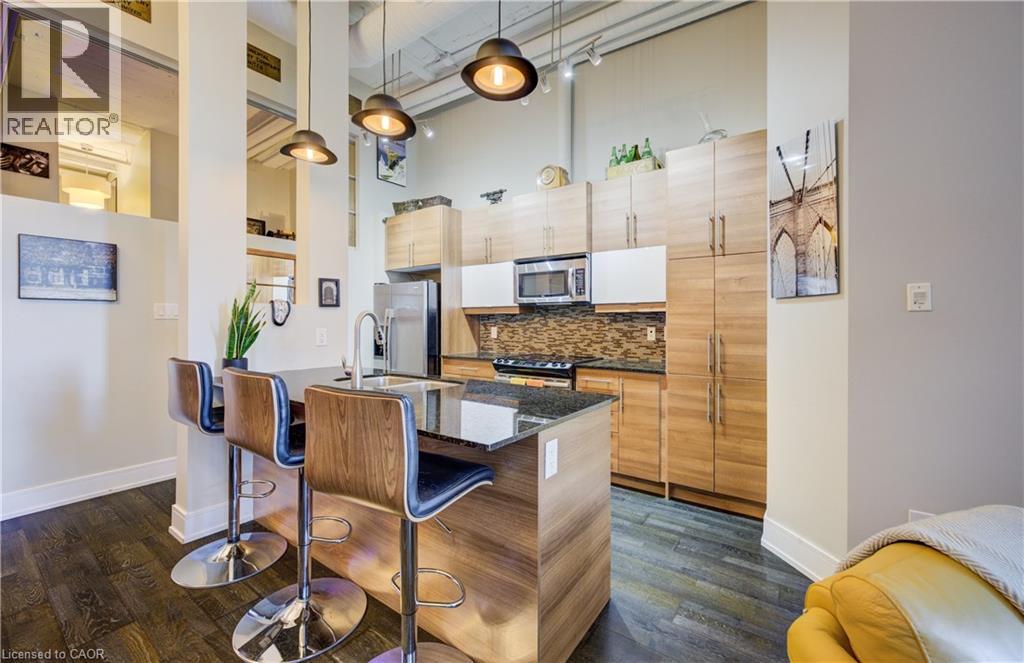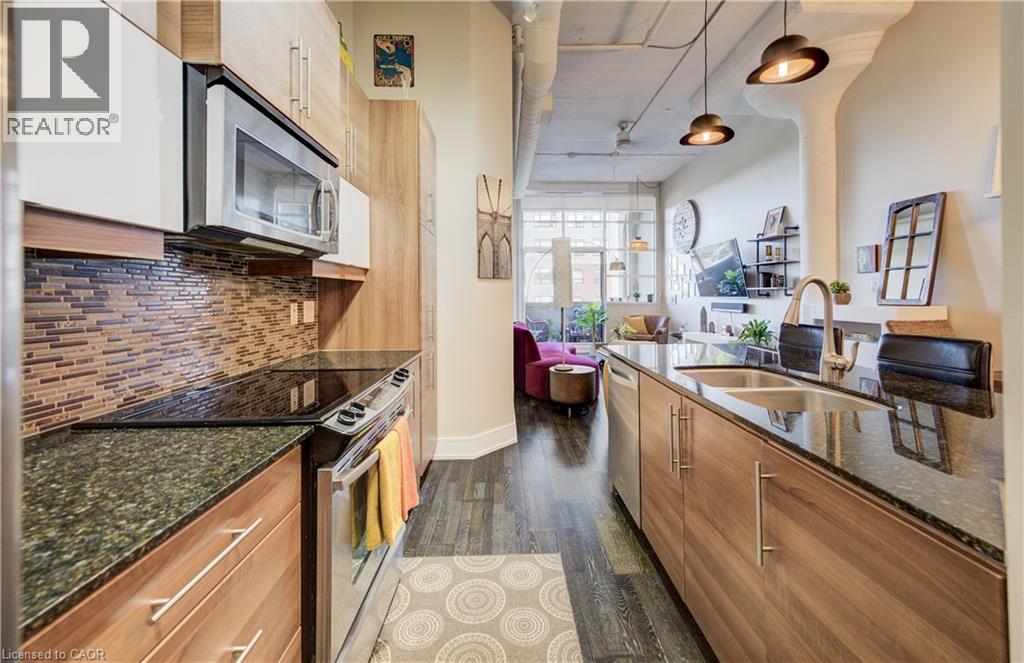 Welcome to The Arrow Lofts – where historic charm meets contemporary design in one of Kitchener’s most iconic buildings. This spacious 2 bedroom, 2 bathroom condo offers over 1147 sq ft of thoughtfully designed living space, perfect for professionals, couples, or those looking to downsize without compromise. This beautiful suite also includes 1 under ground parking spot and is one of the few suites with an extra storage locker as well as a huge storage space inside the suite. Soaring 12 ft ceilings, exposed ductwork, and expansive windows create a bright, open-concept layout that blends industrial character with modern finishes. The stylish kitchen features granite countertops, stainless steel appliances, a large island, and plenty of storage — ideal for cooking and entertaining. The primary bedroom includes a luxurious ensuite with a glass-enclosed shower, whirlpool jet tub and quartz top vanity, while the second bedroom/den is perfect for guests, a home office, or growing families. Additional features include in-suite laundry, upgraded flooring, and ample closet space throughout. Enjoy access to premium building amenities including a rooftop patio with BBQs, fitness centre, sauna, media room, meeting spaces and under ground parking— all just steps from Kitchener’s tech hub, Victoria Park, the LRT, and countless cafes, restaurants, and shops. Condo fees include heat, A/C, water, and more — offering convenience and peace of mind. Book your showing today before you miss out on this beautiful property! (id:46441)