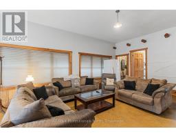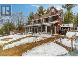 Welcome to your private escape in the heart of Haliburton County-where nature, space, and lifestyle come together on approximately 46 acres of woodland currently enrolled in the Managed Forest Incentive Program. With trails to explore and a a stream at the rear of the property, this is the ultimate setting for those seeking the true cottage country experience. This unique off-grid year round home is designed for comfort, functionality, and gathering. Step inside through the oversized mudroom-perfect for storing all your outdoor gear-and into a spacious dining area warmed by a cozy woodstove. The adjoining living and family room offers a welcoming space to relax, with direct access to a generous 3-season solarium. The main floor also features a 2 pc bath and a large country kitchen complete with ample storage, stainless steel appliances, a separate bar sink, and its own walkout to the exterior-ideal for entertaining and everyday living. Upstairs, the second level offers four spacious bedrooms, a shared 5-pc bathroom, and a versatile common or gaming area-perfect for kids or additional lounging space. The third-floor loft is dedicated to a private primary retreat, featuring a 4-pc ensuite with an oversized walk-in shower complete with dual shower heads for a spa-like experience. As an added bonus, the accessory building expands your living options with two decks, a main floor laundry shared with main house, living space, and bath, plus an upper in-law suite with its own kitchen, bath, and living area-ideal for extended family or guests. This is a rare opportunity to embrace Haliburton life at its finest-offering a self-sufficient, off-grid lifestyle with the potential to connect to hydro at the road in the future. A true homestead setting perfect for large or multi-generational families looking to live, explore, and unwind. Don't miss your chance to experience this one-of-a-kind property and the lifestyle that comes with it. (id:46441)