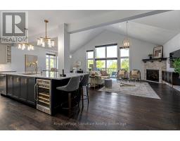 Welcome to this beautifully finished, custom home located in the prestigious community of Lora Bay. From the inviting front porch to the elegant interior, every element has been thoughtfully designed with style and comfort in mind. Step inside to discover a bright and spacious open-concept layout where high-quality finishes and timeless details shine. The main floor offers flexibility with a front office (or second bedroom) and flows seamlessly into the living room, dining area, and gourmet kitchen. The kitchen is a true showpiece, featuring an oversized island with seating, bar fridge, double wall ovens, built-in microwave, and abundant cabinetry, perfect for both everyday living and entertaining. The main floor also includes a well-appointed laundry room and a walkout to a low-maintenance composite deck with a gas BBQ hookup, ideal for outdoor dining. The light-filled primary suite is a private retreat with a walk-in closet and a spa-inspired 5-piece ensuite boasting luxurious finishes. Upstairs, a cozy loft provides additional living space, while two generous bedrooms share a beautifully appointed 5-piece bathroom. The fully finished lower level is equally impressive, with large above-grade windows that fill the space with natural light, a spacious rec room, two more bedrooms, and another 5-piece bath, perfect for hosting family and friends. Practical touches elevate the home further, including a 2-car garage with a Tesla charger, epoxy floor, Vroom vacuum system for easy car cleaning, and a slat wall organization system. Living in Lora Bay offers more than just a beautiful home, it's a lifestyle. Residents enjoy access to a private beach, gym, a stunning trail network, a world-class golf course, and a vibrant social community. With ski hills just minutes away and Thornbury's charming shops, restaurants, and waterfront nearby, this location offers the perfect balance of recreation, relaxation, and convenience. (id:46441)