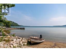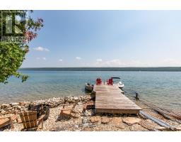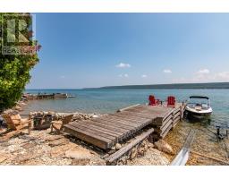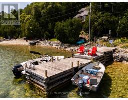 Cottage life is calling! Come experience why Hope Bay is one of the Bruce Peninsula's most beautiful locations. Welcome to your private, turnkey waterfront escape on the sparkling shores of Hope Bay, where natural beauty surrounds you in every direction. Access is simple, scenic, and part of the charm. From the parking area, enjoy a short, peaceful walk (under 10 min) along a beautiful, well-established trail that leads you right to your cottage. Prefer the water? Aluminum boat w/ 20HP Yamaha power tilt motor is included, an easy launch at the parking area-making it just a 1-min ride along the shore to your dock. It's effortless, flexible, and adds to the sense of true getaway privacy. Perched above the trees with sweeping views of the bay and escarpment, this cottage captures everything you imagine in a classic Canadian retreat-peaceful, charming, and naturally stunning. Reconstructed in 2016, the cottage is a true showstopper. Expansive windows and a wraparound deck bring the outdoors in, perfect for soaking in sunrise coffees, sunset views, and easy summer entertaining. Inside, warm pine finishes, hardwood floors, and soaring ceilings create an inviting atmosphere. A pellet stove set into a beautiful stone feature wall adds the perfect cozy touch for cooler evenings. The open-concept layout is ideal for gathering, and the thoughtfully designed kitchen blends seamlessly with the natural surroundings. With three separate sleeping spaces-the main bedroom, loft, and charming bunkie, there's plenty of room for family and guests. The cottage and bunkie are fully insulated with heating and cooling, extending your enjoyment well beyond the summer months. Down at the shoreline, you'll find a solid 50-foot crib dock-no seasonal hassle-plus two boat rails for easy access on and off the water.The generous 100 x 300 ft lot offers exceptional privacy, along with direct access to the Bruce Trail, putting world-class hiking right at your doorstep. Accessible in all seasons! (id:46441)