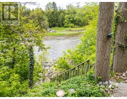 Charming Cape Cod Home on the Beaver River! 114 Clark Street, Clarksburg. Welcome to this idyllic 2658 sq ft 4-bedroom, 3-bathroom Cape Cod-style home perfectly nestled on the banks of the serene Beaver River in the heart of Clarksburg. Set on a beautifully landscaped lot, this property is a true retreat, featuring an enchanting English garden and thoughtfully designed outdoor spaces ideal for alfresco dining under the stars. Step inside to discover a warm and inviting interior where comfort meets character. The main floor offers a spacious open-concept layout with a cozy wood-burning fireplace, ideal for family gatherings or quiet evenings at home. Large windows throughout frame stunning river views, bringing the outdoors in and filling each room with natural light. The country-style, Pinetiques kitchen offers charm and functionality, the adjoining outdoor lounge area offers the perfect setting for enjoying your morning coffee or evening glass of wine, accompanied by the gentle sound of the flowing river. Upstairs, three generous bedrooms provide plenty of space for family and guests, and the two well-appointed bathrooms offer both convenience and privacy. Outside, the magic continues with lush perennial gardens, mature trees, and a private outdoor dining area overlooking the river an entertainers dream. Paddleboards, kayaks, and nature await just steps from your backyard. Located within walking distance to Clarksburg's art galleries, shops, the Clendenan Dam trail system, and only minutes from Thornbury's amenities and Georgian Bay, this property offers a rare blend of peaceful living and vibrant community access. Don't miss the opportunity to make this riverfront gem your forever home. (id:46441)