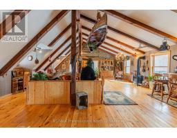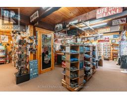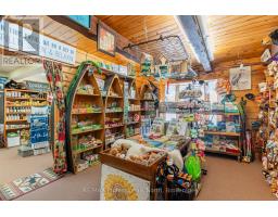 Let your imagination run wild with this iconic building set in the heart of West Guilford - this is the perfect location for your dream business! Visitors and locals alike know this special building with excellent roadside exposure. Zoned CH (Commercial Highway), this property offers a myriad of uses and provides high visibility on a main artery through cottage country. Just a few suggestions for this versatile property - Restaurant, Marine Sales, Landscaping, and more. A beautiful quality log building offers 5,520 sq. ft. split over 3 levels. The main level is currently used as a store with a large living area upstairs that provides 2 bedrooms, full kitchen/eating room, washroom, living area, walkout to a deck, sunroom, additional office or entertainment space, and more. The lower level provides 1,758 sq. ft. of undeveloped space with a walkout to the back parking lot for deliveries. The building has been extremely well maintained with a newer metal roof, a great deck out the back (perfect for that Cafe or Restaurant), full security system, and so much more. A secondary driveway behind the building has a storage area, and gives parking for staff and room for big deliveries. All of this sits on an expansive 1.23 acre lot that is lovingly manicured and offers expansion options. Driving through West Guilford, you cannot miss it, and neither can the thousands of cottagers heading to the cottage and local residents! (id:46441)