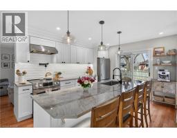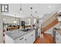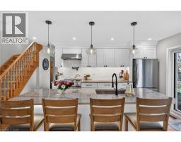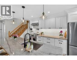 Welcome to this inviting family home offering 1,523 sq ft above grade plus a fully fin bsmnt, set on a pie-shaped lot. With 3 bdrms & 2.5 baths, this home offers an exceptional blend of comfort, function & lifestyle; ideal for growing families seeking both space and convenience. Set on a quiet, dead-end court, the home enjoys a serene, private setting with a spacious yard, along with a 1.5-car garage & 4 driveway spaces, providing ample parking for busy households and guests. Inside, enjoy a bright, open-concept main flr designed for everyday living & entertaining. The renovated kitch (2022) is the heart of the home, seamlessly flowing into the bright front living rm, anchored by large windows, and into the dining area, creating an ideal space for gatherings. The kitch is beautifully appointed with white cab, pot lighting, S/S app (fridge ‘22, dishwasher ‘22, stove ‘24), stunning quartzite countertops & island, a stylish backsplash & a convenient pot filler by the stove. A renovated 2pc bath (2022) & a cozy family rm with a charming wood-burning FP complete the main lvl. Upstairs feat 3 well-sized bdrms, including a spacious primary retreat feat a 4pc ensuite with a shower/tub combo, along with an updated & stylish 5pc main bath (2025) with a double vanity & shower/tub combo designed for busy family living. The fully fin bsmnt extends the living space with a large rec rm, a separate rm currently used as a home gym & a generous laundry/storage area with stacked washer & dryer (2022). Step outside to the expansive pie-shaped backyard offering both green space & patio, perfect for kids, pets & summer entertaining. Significant mechanical upd provide peace of mind, incl furnace (2025), hot water tank (2025), A/C unit (2026), windows (2026) & more. Ideally located in Burlington’s sought-after Maple neighbourhood, just minutes to Mapleview Shopping Centre, Joseph Brant Hospital, downtown & the Burlington Waterfront; close to parks, shopping, dining & commuter routes. (id:46441)