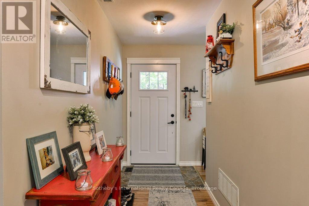 Charming 2-Bedroom Home on Beautifully Treed Lot Near Skeleton Lake. Welcome to this impeccably maintained 2-bedroom, 2-bathroom rural home, nestled on a private, beautifully treed lot just minutes from the shores of spectacular Skeleton Lake. Built in 2014, this inviting home offers comfort, functionality, and style, just a perfect location. Come step inside this bright living space. Enjoy the cozy wood-burning fireplace in the living room, ideal for those chilly evenings. The dining room give access onto a large, south-facing back deck through sliding glass doors, perfect for entertaining or relaxing under the remote-controlled awning on a hot summers day. The spacious primary bedroom boasts a private ensuite, while the second bedroom and full bath offer plenty of space for family or guests. Over the past few years, numerous upgrades have been made, enhancing both the homes efficiency and aesthetic appeal. Outside, enjoy the peace and privacy of a natural setting, with mature trees surrounding the home. At the end of the road, take advantage of public access to Skeleton Lake, including a dock and boat launch, ideal for a quick dip or launching your boat for a ride on this pristine lake. This is a rare opportunity to own a turn-key home in a beautiful area. Don't miss your chance to enjoy the tranquility of rural living with stunning water access just moments away. (id:46441)