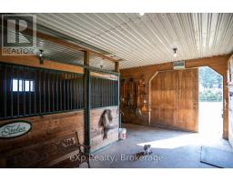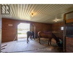 Set a ways back from the paved road, this farm has it all! 121 acres of pasture, workable farmland, mixed bush, a meandering creek, and well-equipped buildings for a variety of farming endeavours. Surrounded by mature trees with views of the horse paddocks from the veranda, the home blends the charm of the original farmhouse: pine floors, solid wood cabinets, and a cozy woodstove with the added space of a bright, modern addition. The farmhouse includes a welcoming kitchen, family room, office or optional bedroom, and a three-piece bath, while the addition features a large, light-filled living room with deck access, a primary bedroom, four-piece bath, laundry room, and attached double garage. Upstairs offers a loft sitting area and second bedroom, and the basement boasts a spacious rec room with built-in bar and pool table. Outbuildings include a 36' x 48' horse stable with four 12' x 12' box stalls, heated tack room with plumbing, a 43' x 50' bank cattle barn with concrete barnyard and separate well, a 26'6" x 46'6" driveshed, and a 40' x 56'6" coverall building. (id:46441)