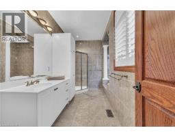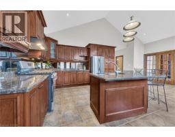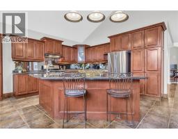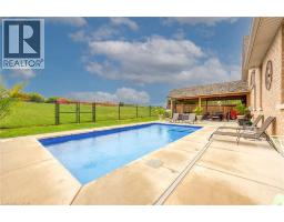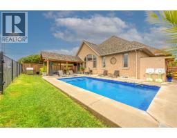 Stunning custom-built bungalow offering over 4,000 sq. ft. of beautifully finished living space! Featuring an open-concept layout with cathedral ceilings, gleaming hardwood floors, and elegant formal living, dining, and family rooms. The gourmet kitchen boasts granite countertops, a breakfast bar, and a bright dinette area. The spacious primary suite includes a walk-in closet and a luxurious ensuite with a deep soaker tub. The fully finished lower level boasts a large recreation room, two additional bedrooms, and a full in-law suite with 8.5-ft ceilings, a second kitchen, and a private walk-up to the garage and side entrance—perfect for extended family or guests. Enjoy outdoor living at its best with a covered deck, saltwater in-ground pool (2020), outdoor 2-pc bath, and no rear neighbours. The fully fenced yard and high-end finishes throughout make this home ideal for entertaining or relaxing in style. Truly a masterpiece of quality and design—you will not be disappointed! Roof (2020). (id:46441)