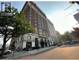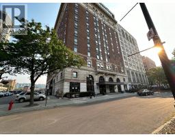 Welcome to The Royal Connaught, one of Hamilton’s most iconic and prestigious addresses. Originally opened in 1916, this landmark building has hosted royalty, celebrities, and dignitaries over the past century and has since been beautifully restored into a luxury condominium, blending historic charm with modern sophistication. This bright and well-appointed 1-bedroom, 1-bathroom suite offers a functional layout with stainless steel appliances, elegant finishes, and stunning views overlooking the escarpment. Large windows bring in plenty of natural light, creating a comfortable and elevated living space in the heart of the city. Residents enjoy access to premium amenities including on-site security, a fully equipped fitness centre, stylish lounge and social spaces, a private theatre room, and an expansive outdoor terrace. Convenience is unmatched with Starbucks located right at the base of the building, along with restaurants, cafés, transit, and everyday essentials just steps from your door. Located in the vibrant downtown core, you’re minutes from the GO Station, St. Joseph’s Healthcare, and Hamilton’s growing restaurant and arts scene, making this an ideal home for professionals seeking both lifestyle and convenience. Includes 1 parking space and 1 locker. Available immediately. Experience luxury living with history, character, and unbeatable location, this is a rare opportunity you don’t want to miss. (id:46441)