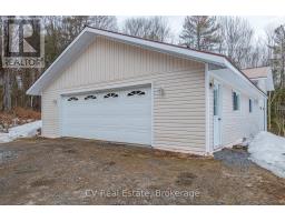 Offering exceptional value with acreage, location, a solid home, and a standout shop! As you arrive, you immediately sense the privacy that defines this exceptional property, perfectly set back from the road, just 5 minutes from the charming village of Baysville. Spanning 76 acres, the landscape is truly spectacular, surrounded by towering pines, and ever-changing seasonal colours. At the heart of the property sits a beautifully maintained Viceroy home, bright, welcoming, and move-in ready, showcasing pride of ownership throughout. Large windows flood the interior with natural light and create a seamless connection to the outdoors, with views from nearly every room. The stunning living room features a high vaulted ceiling and a unique sunken design that adds both character and warmth. A charming bay window provides the perfect nook to relax and unwind. Step outside to the exceptionally large wrap-around deck, built to support a hot tub and elevated to capture peaceful, panoramic views-creating a sense of calm, privacy, and a truly special vantage point. The home also offers a full, partially finished basement with excellent potential for a rec room, additional bedrooms, office, gym, or games area. A major highlight is the 2,000+ sq ft garage, ideal for hobbyists or contractors, featuring two 18-ft doors, including one 14-ft high, perfect for large equipment or recreational vehicles. A loft above offers added storage or future development potential. A solid three-run dog kennel on a concrete pad could easily be restored or converted into a chicken coop or other use. Well water is abundant, clean, and reliable. Located in a welcoming community known for its iconic dam, you're minutes to lakes, boat launches, tennis courts, golf, Bigwin Island, Miss Nelle's Café, shops, dining, and more. Old skidoo trails wind throughout the property, leading to a waterfall, offering endless opportunities for hiking, ATVing, snowshoeing, or simply exploring your own forest. (id:46441)