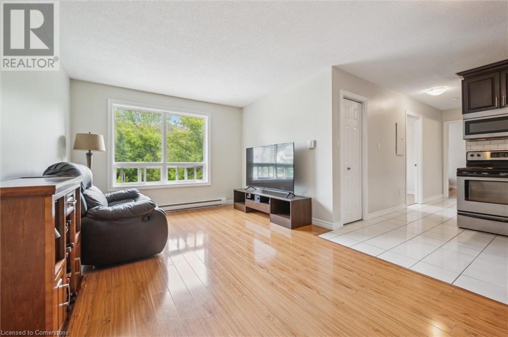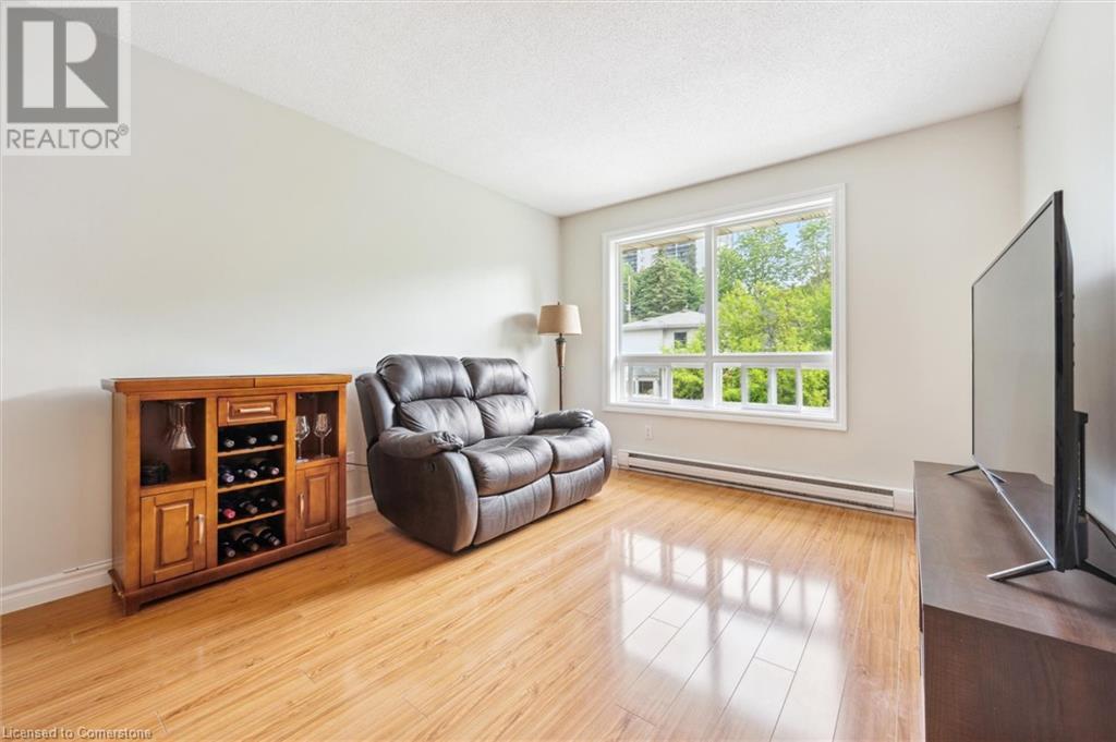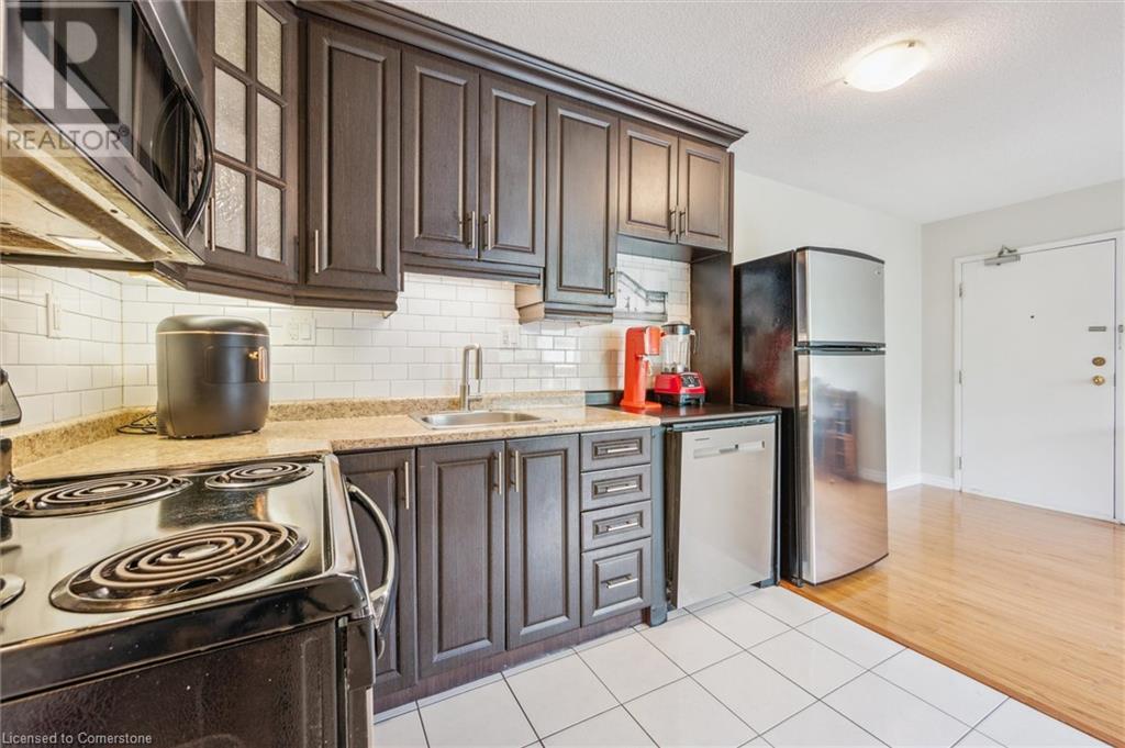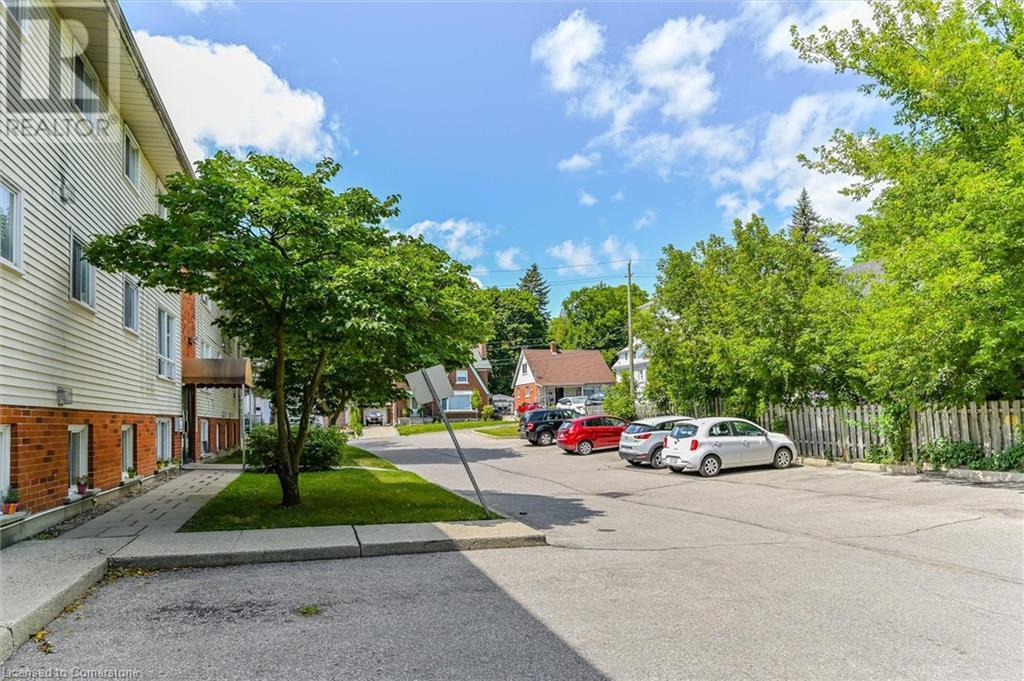 $829.91 MonthlyVery quiet TOP FLOOR unit with no neighbours above you! Why pay rent when you can own this stylish, freshly painted & affordable, 2-bedroom condo in a PRIME DOWNTOWN LOCATION? This is a fantastic opportunity for first-time buyers to break into the market and start building equity. Located in a highly walkable, in-demand downtown area just steps to Victoria Park, the Farmers’ Market, public transit, & a growing tech hub. The updated, CARPET-FREE interior features a modern kitchen with tile backsplash, fridge, stove, dishwasher, & built-in microwave & a beautifully RENOVATED bathroom with tiled shower. Enjoy IN-SUITE LAUNDRY with a convenient all-in-one washer/dryer combo, plus additional building laundry facilities. Includes a 2024 window A/C unit, owned water heater & water softener. Secured entry with intercom & security cameras. VISITOR PARKING & an exclusive surface parking space are included. Condo fees cover water, the roof, & windows which were recently updated & have a convenient tilt-in feature to easily clean the exterior glass. A great start to homeownership in a vibrant and growing community. Attention investors, add a strong performer to your portfolio with this affordable 2-bedroom condo in the heart of Kitchener! (id:46441)