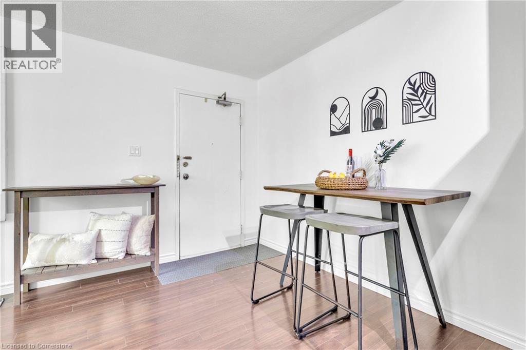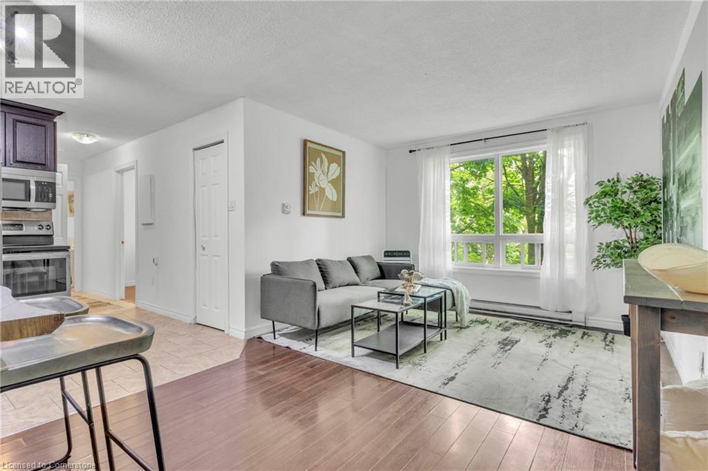 $829.91 MonthlyAffordable living doesn’t get any better! This charming 2 bedroom unit is just a short walk to Kitchener's Farmers Market and all the incredible bakeries and cafes that Downtown Kitchener has to offer- yet it’s tucked away in a quiet, tree lined area for added privacy. Carpet free throughout, the unit features a bright and open layout connecting the kitchen, living, and dining areas. Both bedrooms are generously sized, with one offering the perfect setup for a bedroom/home office combination. The 4pc bathroom is finished with tile and conveniently located near the bedrooms. Enjoy the added convenience of in suite laundry, one included parking space, and water covered in the condo fees! This is an excellent opportunity for first time buyers looking to get into the market, downsizers, or investors alike! (id:46441)