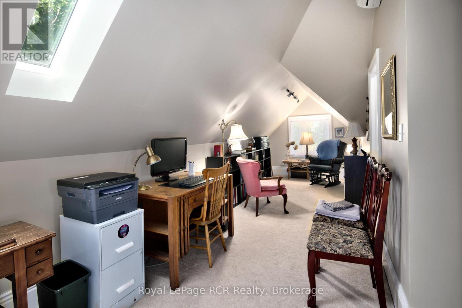 Welcome to this 4 bed 3 bath 2.5-storey century home with attached garage, offering 2,616 square feet of beautifully updated living space while preserving its timeless character. Set on a corner lot in a desirable, family-friendly neighbourhood, this home combines classic charm with modern convenience. The inviting front porch sets the tone, leading into a warm and welcoming open concept main floor. The kitchen features an island with granite countertops, a large pantry, and engineered hardwood floors, opening to a dining area that flows seamlessly into the spacious living room. Here, soaring high ceilings, a cozy gas fireplace, hardwood flooring, and custom crown molding create an elegant space for both everyday living and entertaining. A convenient 2-pc bathroom completes the main level. Upstairs, the primary bedroom is generously sized with a good closet, accompanied by two additional bedrooms, a full 4-pc bathroom, and a well-placed laundry area. The finished attic offers versatility with a fourth bedroom or recreation room, along with its own 3-pc bathroom and dedicated heat pump and A/C. The unfinished basement provides ample storage and workshop space. Outdoors, a flagstone patio, mature trees, and a storage shed add to the property's appeal. The single attached garage with a concrete driveway enhances both functionality and convenience. Additional features include a fibreglass roof (2018), forced-air natural gas furnace with central air, and ceiling fans in all bedrooms. With its private side entrance, thoughtful renovations, and unbeatable location within walking distance to Kelso Beach and the harbour, this century home is the perfect blend of comfort, character, and lifestyle. (id:46441)