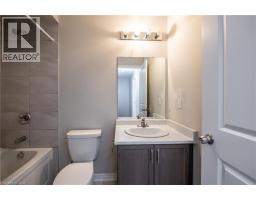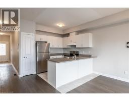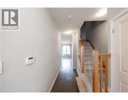Welcome to this stylish townhome offering 3 spacious bedrooms, 2.5 bathrooms, and parking for two vehicles with an attached garage and private driveway. The open-concept main floor features 9-ft ceilings, a bright living and dining area, and a modern kitchen with a large island, stainless steel appliances, upgraded cabinetry, and pot lights throughout. A convenient powder room and walkout access to the backyard complete the main level. Upstairs, the primary bedroom features a walk-in closet and a private 3-piece ensuite. Two additional bedrooms, a full bathroom, and the convenience of second-floor laundry provide comfortable and functional living space. Ideally located across from parks with beautiful escarpment views and close to schools, shopping, and Fifty Point Conservation Area. Easy access to the Queen Elizabeth Way and the future Confederation GO Station makes commuting simple. Vacant and move-in ready—an excellent opportunity to lease a beautiful home in a desirable location. (id:46441)