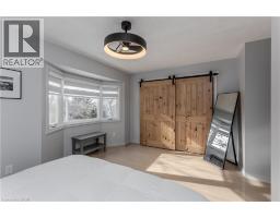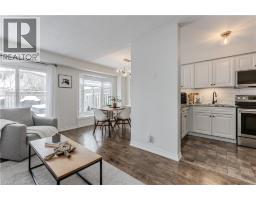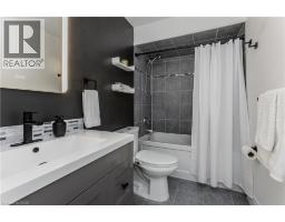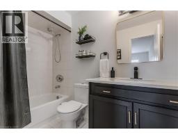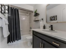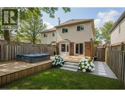 Welcome to a beautifully updated semi-detached home set in family-friendly East Waterdown. This home exudes elegance with its modern flair and designer finishes inside and out. Curb appeal is instantly inviting with an updated walkway, entry and landscaped front yard. Inside, the home feels bright and spacious with an open-concept kitchen that is both stylish and practical, complete with granite countertops, breakfast bar, backsplash, stainless steel appliances, and an abundance of cabinetry. The spacious living room offers a walkout to the rear yard, creating a seamless connection to outdoor living, while the dining area is highlighted by a bay window flooding the home with natural light. Upstairs, the primary bedroom is a true retreat, featuring wall panelling, a bay window, barn doors, dual closets, and a modern 4-piece ensuite. Two additional bedrooms, one with direct access to the well-appointed 4-piece main bathroom provide a comfortable space for children, guests, or a home office, both featuring sleek modern built-in feature walls. The fully finished lower level adds valuable living space, offering a large recreation room with custom built-in media wall with electric fireplace as the focal point—ideal for movie nights, entertaining, or a kids’ hangout. Additional finished space is ideal for an exercise room/office complemented by a laundry room, and multiple storage rooms. Outside, the fully fenced backyard is ready for family fun, complete with a wood deck with hot tub and mature trees in neighbouring yards providing excellent privacy. With too many updates and upgrades to list, this beautiful home also features an EV ready garage, accompanied by a 200amp electrical panel upgrade for a modern living experience. Offering the perfect blend of the quality of mature with the feel of something new, this modern gem is set on a premium lot just steps to beautiful Gatesbury and Cranberry Hill parks. This one is not to be missed, book your showing today! (id:46441)