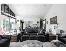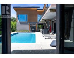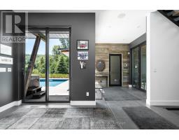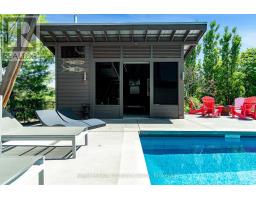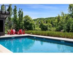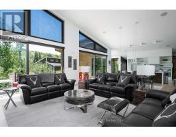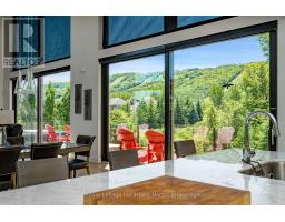 An Architecturally Iconic Luxury Ski Chalet, just steps from Craigleith. This celebrated retreat offers a rare balance of total privacy and effortless access, moments from the ski hills and tennis courts. Set on an expansive 100' x 159' lot backing onto tranquil green space, the property is beautifully landscaped to create a true four-season sanctuary. Designed for elevated mountain living, the chalet features a resort-style swimming pool, pool house, and hot tub, all framed by dramatic TILCO lift-and-slide window walls across two levels, capturing sweeping views of the ski hills and grounds beyond. Spanning three levels, the residence offers six luxurious bedrooms and four bathrooms. The upper-level great room is a showpiece, with soaring 22-foot ceilings, a Rumford-style gas fireplace, and a cantilevered walk-out deck-perfect for après-ski gatherings. The chef's kitchen is outfitted with premium appliances, a striking island, and a walk-in pantry, seamlessly blending form and function.The private primary suite occupies the upper level as well, featuring a distinctive walk-in closet and serene views. On the main floor, a sophisticated media lounge opens directly to the pool deck through expansive sliding doors and includes a wet bar / kitchenette, and fireplace, along with two additional bedrooms and full bath. The lower level completes the home with three generously sized bedrooms and another bath, ideal for hosting family and guests. This exceptional ski chalet is offered for immediate possession - an unparalleled opportunity to own a landmark retreat in one of the area's most coveted locations. (id:46441)