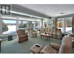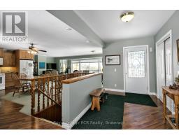 Wake up to peaceful waterfront living in this beautifully maintained 5-bedroom, 2.5-bath detached brick bungalow with direct water access to McCullough Lake - the perfect setting for year-round enjoyment or a relaxing retirement retreat. Designed with comfort and functionality in mind, the main floor features a bright open-concept living area ideal for entertaining or everyday living. The renovated eat-in kitchen (2010) offers ample cabinetry and workspace, flowing seamlessly into the spacious living room highlighted by large windows and patio doors leading to a generous deck overlooking the water - the perfect spot for morning coffee or evening sunsets. Private primary suite with closet, office area, and 4-piece ensuite. A second bedroom and convenient 2-piece bath complete the main level. The finished basement extends your living space with a cozy family room featuring an airtight woodstove, dedicated office area, three additional bedrooms, a 3-piece bathroom, and laundry - offering flexibility for guests, hobbies, or multigenerational living. Outside, you'll appreciate the practical extras: three garden sheds for storage, plus an insulated workshop (32'4" x 7'8") located off the garage - perfect for projects, tools, or extra workspace. Set in a welcoming community just minutes from the local community centre with pickleball courts and curling club, this property offers the ideal balance of tranquility and connection. Whether you're looking to retire in comfort or simply enjoy waterfront living, this inviting bungalow is ready to welcome you home. ** This is a linked property.** (id:46441)