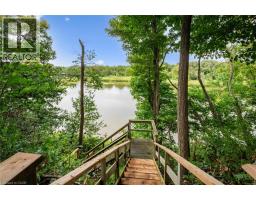 Set along the Grand River, this bungalow combines over 3,000 sq. ft. of finished living space with a rare connection to nature, all just minutes from Cambridge and Kitchener amenities. Originally built as a three-bedroom, the main floor now offers two bedrooms and two full baths, including a primary suite with river views, with the option to restore the original three-bedroom layout. Expansive windows fill the open living, dining, and kitchen areas with light, while providing a seamless view of the river and access to the deck. The lower level extends the home with a walk-out family room, third full bath, and flexible rooms that can serve as bedrooms, guest space, or a home office. Outdoors, the deep, tree-lined lot leads directly to the river—ideal for paddling, fishing, or simply relaxing in a peaceful setting. Updates include new sump pump (2025), water pressure tank (2023), deck boards (2021), shed (2021) septic tank (2016), water filtration, softener and chimney. With an attached double car garage, ample parking, and quick access to major highways, this property blends privacy, practicality, and the unique lifestyle of riverside living. (id:46441)
