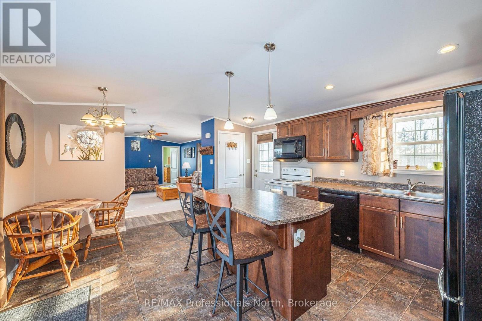 This cozy 2 bedroom modular home sits on a level 1.4-acre lot and offers comfortable, easy living both inside and out. The main floor features a bright living space, a four piece bathroom, and convenient main floor laundry. Downstairs, the full basement includes a spacious family room, a separate room that can be finished for extra guests, and a mechanical room, which gives you plenty of flexibility for added living space. Outside, you'll love the large front porch for relaxing and the generous back deck that's perfect for entertaining. The 24' x 24' detached garage is spray-foamed for efficiency and equipped with a propane heater, making it ideal for year round use. Easy access to the rail trail and the scenic Ritchie Falls on the Burnt River, located just down the road. Perfect for outdoor lovers. With lots of room to enjoy the outdoors and practical features throughout, this property is a great place to call home. (id:46441)