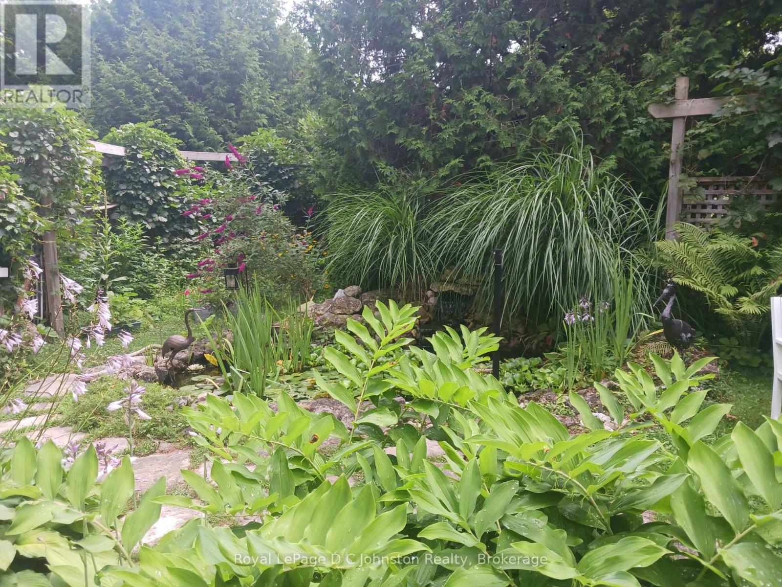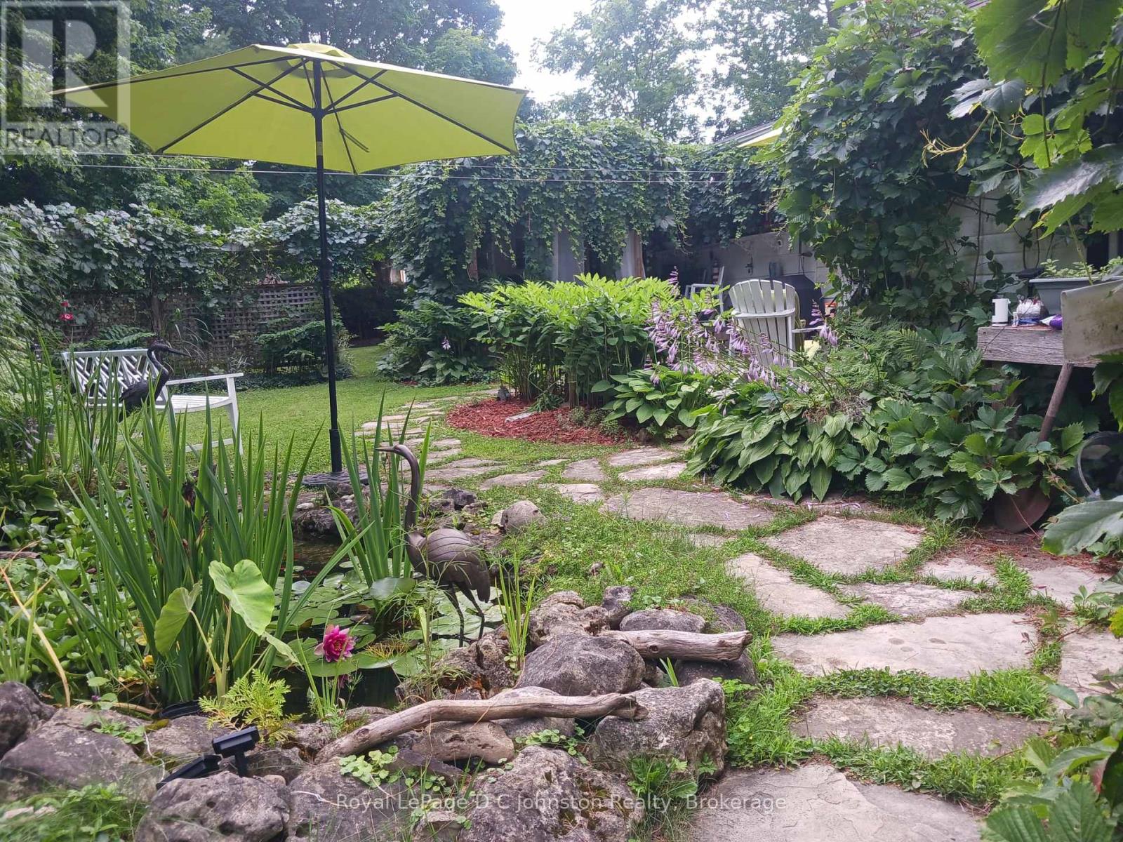 This lovely two-bedroom bungalow sits on an oversized 104-foot-wide lot in a quiet, desirable area of Southampton. The home has been freshly updated and features forced-air natural gas heating and copper plumbing throughout. A bright walkout leads to a spacious, fully enclosed sun porch, perfect for relaxing and enjoying the outdoors. The backyard is beautifully landscaped with mature trees, lush bushes, perennial gardens, and a charming koi pond, creating a peaceful retreat. A garden shed provides convenient storage for tools and equipment, while a fully insulated backyard studio or bunkie with power offers additional versatile space. The home also includes an attached garage with direct entry into the house, and a double-wide concrete driveway with parking for up to four vehicles. This home is vacant and move in ready! (id:46441)