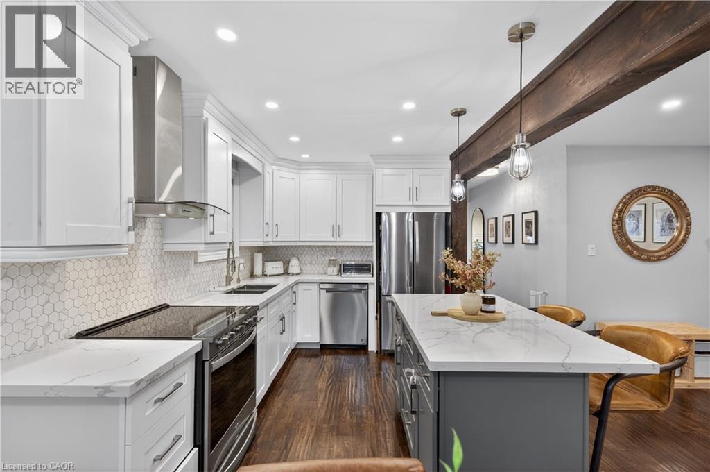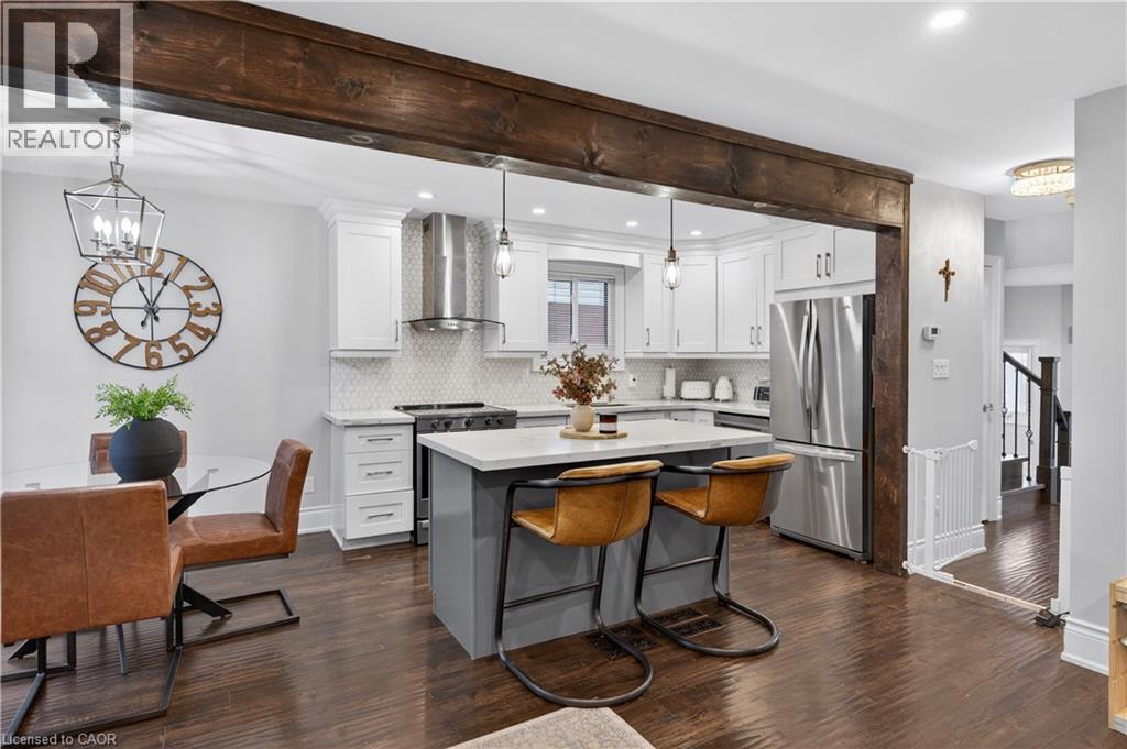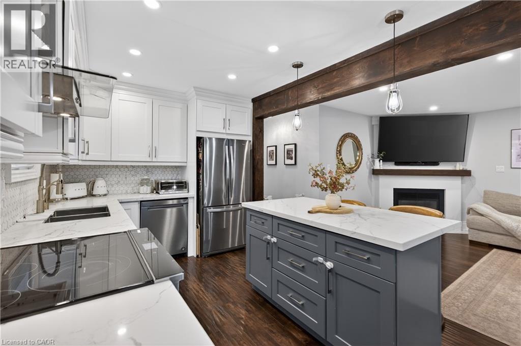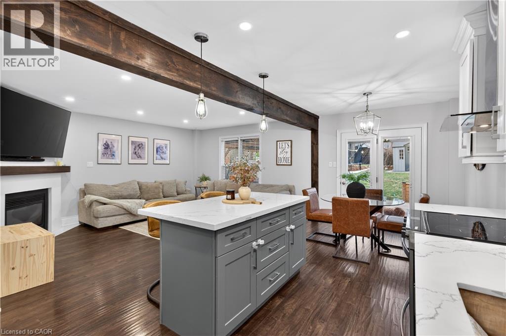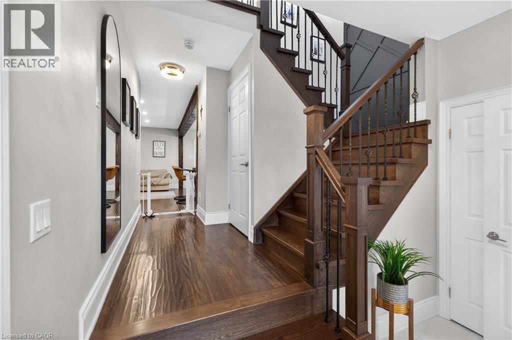 Welcome to this elegant two-story family ready home nestled in Waterdown. This home boosts a double car garage and near 1800 sq feet of total living space over 3 levels of move in ready style! As you enter, you'll be greeted by pristine porcelain tiles in the foyer, leading to an open-concept design connecting the kitchen, living room, and dining room, all adorned with beautiful hardwood flooring. Upstairs, you'll find three spacious bedrooms and main bathroom offering ample living space. Step outside to a generous rear deck, offering privacy and a perfect spot for outdoor enjoyment. The fully finished lower level features a cozy fireplace, creating an inviting space for relaxation and entertainment. This home is the epitome of comfort and style in a wonderful neighbourhood. (id:46441)
