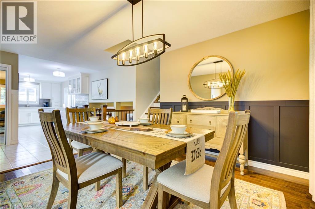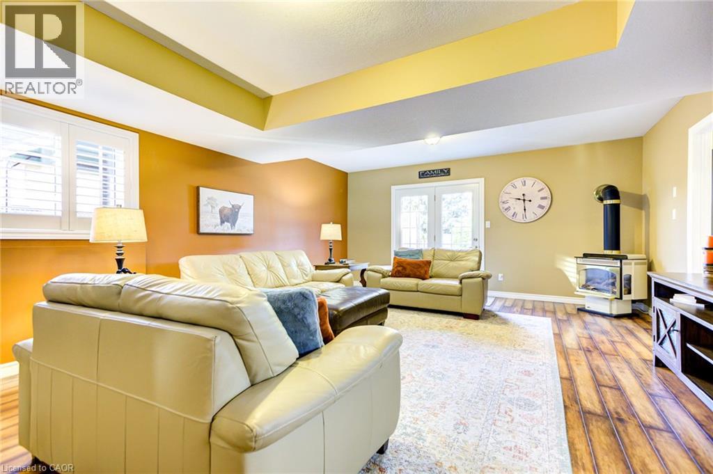 Sitting on a large lot in a sought after West Galt neighborhood, this gorgeous 4 level back-split shows AAA, is move-in ready and perfect for the growing family. The super bright; open concept floor plan features 3 beds, 2 bath, a modern updated custom kitchen with quartz counters, under mount stainless steel sink and back-splash (2019), vaulted living room, separate dining room, hard wood + ceramic floors, 6 premium appliances and a large front foyer. Visible from the main floor and just a few steps away is the welcoming third level boasting a spacious family room with walk-out to yard, gas fireplace, updated 3pcs bath and a remodeled laundry area that serves perfectly as a home office or a 4th bedroom. Needing extra living space? The large unspoiled basement is full of potential and awaiting your imagination. Enjoy morning coffee or beautiful evening sunsets on one of the two rear decks overlooking the private, fully fenced treed yard. Other notables include roof (2015), furnace (2016), garage door+front door+ patio & garden doors (2019), all windows on upper 3 levels (2024), California shutters (2024), washer/dryer (2024), en-suite privilege and water softener. This fabulous home is conveniently located just minutes to schools, shopping, parks, scenic nature trails, HWY 401 and the Historic Downtown Galt district. Pride of ownership in this home is impossible to overlook; as attention to detail is evident at every turn. Be sure to add 122 Westcliff Way to your “must see” list today... you won’t be disappointed! (id:46441)