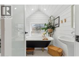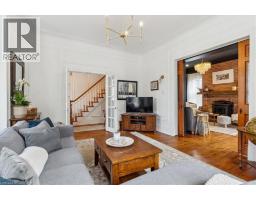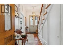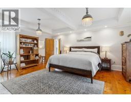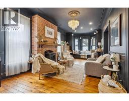 The Dolmage House, a historic Grimsby landmark surrounded by mature trees & nature. Built in 1876 by a local businessman for his wife & 3 daughters, this Italianate Victorian home blends timeless charm w/ modern luxury. The original double red brick walls are structurally sound &highly insulating, offering the perfect balance of character & warmth. The new flagstone pathway leads you to this 4-bed, 4-bath home spanning 3644 sq ft of thoughtfully designed space. Enter to a bright living area & an elegant dining room w/ pot lights, chandeliers, a century upright piano & heritage-style gas fireplace. Heart of the home is the remodeled modern farmhouse kitchen, featuring an oversized island, reclaimed barn wood elm floors, GE range oven, Bosch fridge, & Perrin & Rowe English Gold faucet. Adjacent is a mudroom/main-floor laundry w/ heated floors, built-in shelves, & a convenient powder room. Upstairs, the grand primary suite has 5 B/I closets & a 4-pc ensuite w/ a double vanity & curb-less glass shower. 2 oversized bedrooms w/ bay windows and spacious closets offer comfort, 1 of them w/ a Victorian coal fireplace. Third-floor loft retreat includes space for an extra bedroom luxurious 3-pc bathroom w/ a clawfoot tub. Century-old speakeasy wine cellar, featuring wood beams, & a bespoke wood wine rack originally made for a local winery. Outside, enjoy new Arctic Spas wi-fi enabled saltwater hot tub, wrought iron & wood fencing, 2 enclosed yards, & a Muskoka-style fire pit. Refurbished spiral staircase, originally made for the candle coal factory in Grimsby, leads to a rooftop terrace w/ escarpment views. 7-car parking area & room for a garage. Located in a top school district, enjoy immediate access to the Bruce Trail, 40 Mile Creek Pedestrian Bridge, & a public pool across the street. Historic Downtown Grimsby is just a 7-min walk. Updates include a new roof, tankless water heater, upgraded electrical panel, & new storm windows, blending heritage w/ energy efficiency. (id:46441)