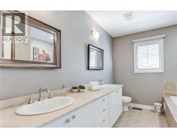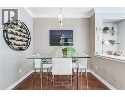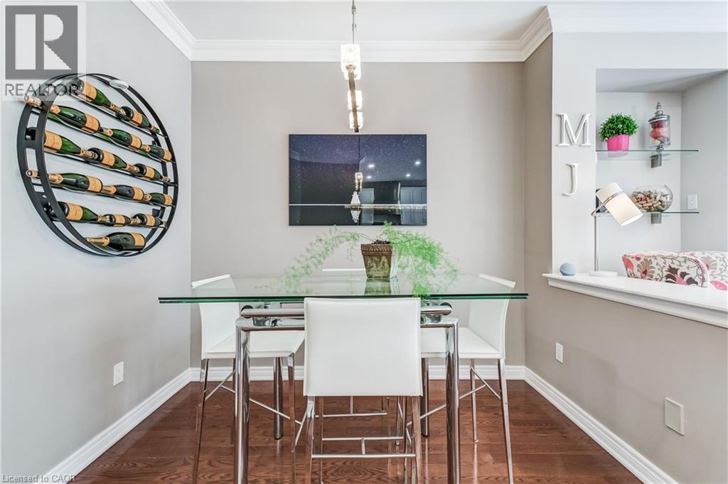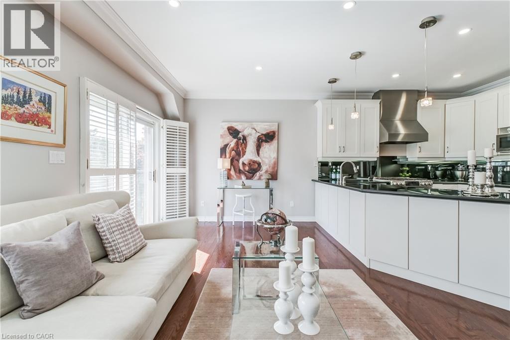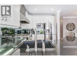 Step into timeless elegance where every detail has been thoughtfully curated. An immaculate Fernbrook luxury townhome on a quiet street in sought-after Joshua Creek. This stunning 3-bedroom, 4-bathroom home with a professionally finished basement combines timeless elegance with modern upgrades and exceptional attention to detail.The inviting foyer opens to a spectacular 2-storey entrance with a curved oak staircase that welcomes you as you step into 9ft ceilings, rich crown mouldings, smooth finishes, and hardwood floors that flow throughout the main level. Entertain in the formal dining room with coffered ceiling and fluted columns, or relax in the generous family room featuring an upgraded gas fireplace with marble surround, large window, and walkout to a private exposed aggregate patio framed by lush a garden.The sleek eat-in kitchen is a chefs dream with deluxe white cabinetry, granite counters, a walk-in pantry, and stainless steel appliances. Upstairs, the spacious master retreat offers a huge walk-in closet and a lavish spa-inspired 5-piece ensuite with whirlpool tub, his-and-hers sinks, marble counters, and a frameless glass shower. Two additional bright bedrooms and a large main bath provide comfort for the whole family.The professionally finished basement features a large recreation room with upgraded fireplace and stone mantel, open concept multipurpose area, office niche, 2-piece bath, laundry room, and ample storage.Enjoy outstanding curb appeal with a handsome brick and stone exterior, landscaped gardens, and double garage. Recent mechanical upgrades include Carrier Infinity furnace & A/C (2019), high-efficiency air cleaner, humidifier, UV air treatment system, and smart home control pad.Move-in ready, this home offers luxury, privacy, and convenience close to top schools, parks, trails, shopping, highways, and GO transit. (id:46441)