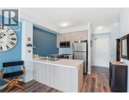 $536.93 MonthlySituated along the shores of Lake Ontario, this beautifully maintained 1 bedroom + den suite offers the perfect blend of comfort and convenience. Ideally located on the main level, this carpet free home is perfect for easy everyday living; no elevators to wait for when unloading groceries, bringing in packages, or welcoming guests. The open-concept kitchen features stainless steel appliances and breakfast bar seating, flowing seamlessly into the bright living area with sliding doors leading to your private patio, ideal for morning coffee or stepping out for a sunset stroll along the waterfront trails. The spacious primary bedroom includes a walk-in closet, while the versatile den makes an excellent home office or guest space. A 4-piece bathroom and in-suite laundry add to the practical layout. Sapphire residents enjoy exceptional amenities including a rooftop terrace with breathtaking lake views, fitness centre, party room, bicycle storage, underground parking, storage locker, and ample visitor parking. Expansive green space surrounds the building, with walking and biking trails at your doorstep and the sandy beach just a two-minute walk away. With quick QEW access and everyday amenities nearby, this is low-maintenance waterfront living designed for ease. Move in, unpack, and enjoy the lake. (id:46441)