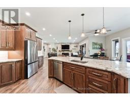 Prepare to be wowed!! Stunning Home on Estate Lot in Forest Creek Estates with Over 5,000 Sq. Ft. of Luxury Living!! Nestled on 1 acre, this custom-built executive bungalow offers an impeccably finished living space, including a full in-law suite with private entrance. Built in 2020, this high-efficiency home blends timeless elegance with modern convenience. Heated concrete driveway and walkways lead to the impressive stone exterior, surrounded by professional landscaping, mature trees, a fully fenced yard, irrigation system, and a stone patio with fire pit, perfect for outdoor entertaining. Inside, the open-concept main floor is designed for both comfort and sophistication. The chef's kitchen features rich maple cabinetry, a striking granite-topped island with seating, and seamlessly flows into a spacious dining area and living room. Step outside to a covered patio retreat, complete with a hot tub for year-round relaxation. The main level also includes a luxurious primary suite with a spa-like ensuite bath, convenient main floor laundry, two additional bedrooms (1 currently an office), and a beautifully appointed 4-piece bath. The fully finished lower level, with in-floor heating, offers endless possibilities with a media room, office, fitness area, guest bedroom, and a self-contained in-law suite. Generator included that powers the entire home. Car enthusiasts and hobbyists will love the oversized in floor heated, two-car garage, featuring epoxy floors, truss core walls, and direct stair access to the lower level. An additional showstopper is the detached 1298 sq. ft. in floor heated shop, complete with 16-ft and 8-ft doors, epoxy floors, and premium finishes ideal for business or recreation. A lifestyle to embrace with the beauty of the surrounding Escarpment Biosphere Conservancy and Boyd Lake steps away to drop in your kayak. This exceptional property truly has its all- luxury, lifestyle, space, privacy, and premier location. (id:46441)