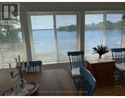 SHAWANAGA BAY - READY TO GO! Fully renovated in 2019, this move-in ready cottage has 3 bedrooms and 3 bathrooms between the main cottage and bunkie. The kitchen is fully equipped, including a built-in microwave and dishwasher. A fully windowed dining room seats 12 and offers glorious views of the bay. Full hydro service allows heating by baseboards and window air conditioning, when needed. A WETT-certified wood stove and fireplace provides additional warmth and atmosphere. A spacious living room with high ceilings features expansive views to the south and west. Satellite TV and wireless internet offer modern conveniences as well. A new septic was installed in 2022 and a filtration system provides drinkable water to all faucets. A separate laundry hut houses a full-sized washer and dryer. The on-shore boat house offers excellent storage for marine equipment and outdoor furniture. The long view down the bay is magnificent, with its prevailing south-west wind and incredible sunsets: a prime location for sailing and other water sports - or just lounging on the sand beach or dock. The regular breeze keeps it cool and greatly minimizes the bugs. The neighbourhood is very private with Crown land behind and to the south. Pointe au Baril marinas are about 10 minutes away by boat, and the popular Ojibway Club is a similar distance to the south. All buildings have been reshingled as of May 2024. (66030533) (id:46441)