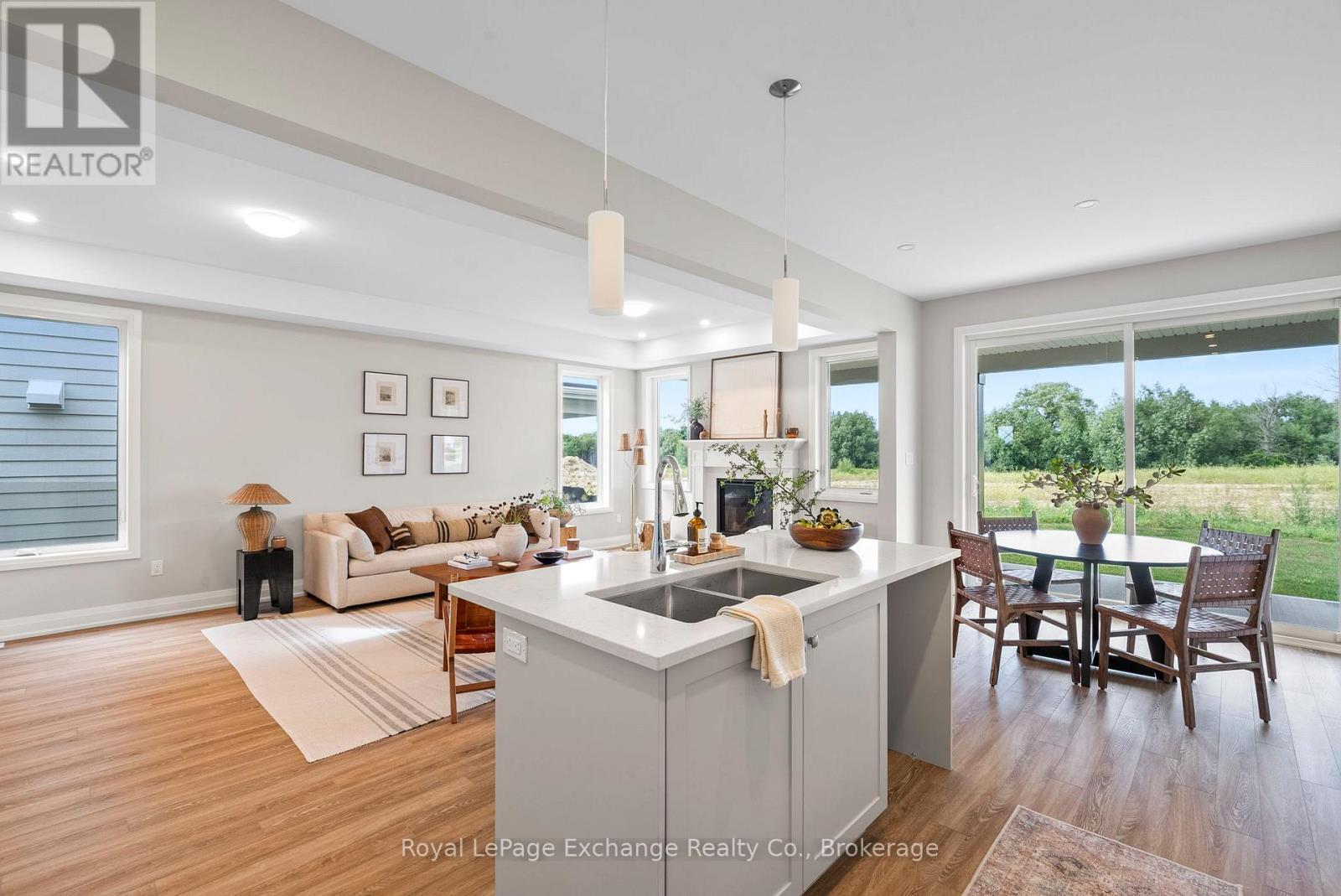 Discover the perfect blend of modern elegance and coastal charm in The Salacia, a stunning 4-bedroom, 3-bathroom home nestled in the Seashore development just north of Kincardine. Thoughtfully designed as part of a master-planned community focused on peace, lifestyle, and elevated lakeside living, this 2,087 sq ft home by Mariposa Homes offers both style and substance.Step inside to find 9' ceilings and luxury vinyl plank flooring throughout the main floor, setting the tone for refined comfort. The open-concept layout includes a beautifully appointed kitchen, spacious dining area, and a great room featuring an elegant coffered ceiling and cozy gas fireplace perfect for entertaining or relaxing with family. A 2-piece powder room and inviting foyer complete the main level. Follow oak stairs with matching handrails to the second floor, where you'll find four generous bedrooms, a tiled laundry room, and two full bathrooms. The primary bedroom is a serene retreat with a walk-in closet and a spa-inspired ensuite featuring a glass shower and freestanding tub. Outside, this home exudes curb appeal with James Hardie siding, a premium insulated steel-panel garage door, decorative window grills, and coastal-inspired architectural detailing. Enjoy the outdoors year-round from your covered front porch or entertain in style under the loggia off the dining room, seamlessly extending your living space. Built by Mariposa Homes, a trusted name in Southern Ontario since 1998 with over 1,000 homes to their name, The Salacia delivers timeless craftsmanship in a peaceful, well-connected community. Don't miss your chance to experience lakeside luxury contact today for a private showing! (id:46441)