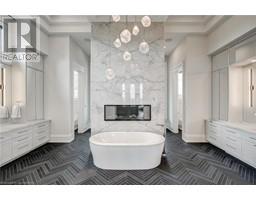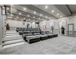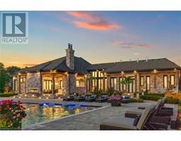 Set amidst a 5.2-acre estate, this extraordinary 26,000+ sq ft mansion offers unparalleled luxury and privacy. The gated and secured property features a stunning 1/3-acre aerated pond leading to a sprawling contemporary bungalow with lofted in-law quarters and a 5,210 sq ft detached garage with lounge, wash bay, and private gas pump—ideal for car enthusiasts.Surrounded by serene countryside, yet minutes from the heart of Ancaster, the renowned Hamilton Golf & Country Club, and Highway 403, offering both seclusion and convenience. Inside, every room showcases soaring 14 to 18-foot custom moulded ceilings, 32-inch porcelain flooring, and the highest quality materials and craftsmanship. The state-of-the-art home features whole-home automation by Control4. Spacious living areas feature custom granite walls with Town & Country fireplaces. A gourmet kitchen is equipped with top-tier appliances, including Sub-Zero, Thermador, and Miele. The luxurious lanai is perfect for entertaining, with heated Eramosa flagstone, a full outdoor kitchen, 72” Woods gas fireplace, and phantom screens. The opulent primary suite includes a private patio with hot tub and an expansive dressing room. The ensuite features heated herringbone floors, a soaker tub with fireplace, towel warmer drawers and a digital rain shower. The opposite wing offers three additional bedroom suites, each with walk-in closets and ensuites. A Cambridge elevator provides access to the entertainer’s dream basement, with a party room, full bar, professional gym with sauna and steam shower, games room, and a state-of-the-art home theatre. This 24-seat Dolby Atmos theatre features a 254-inch screen, 24-foot ceiling height, and a Kaleidoscope movie server for the ultimate cinematic experience. Outdoor amenities include a 35’ x 75’ heated pool, a 14-person hot tub, and an entertainment cabana with a media area and hosting bar. A regulation-size sports court and a children’s playground complete this family-friendly estate. (id:46441)