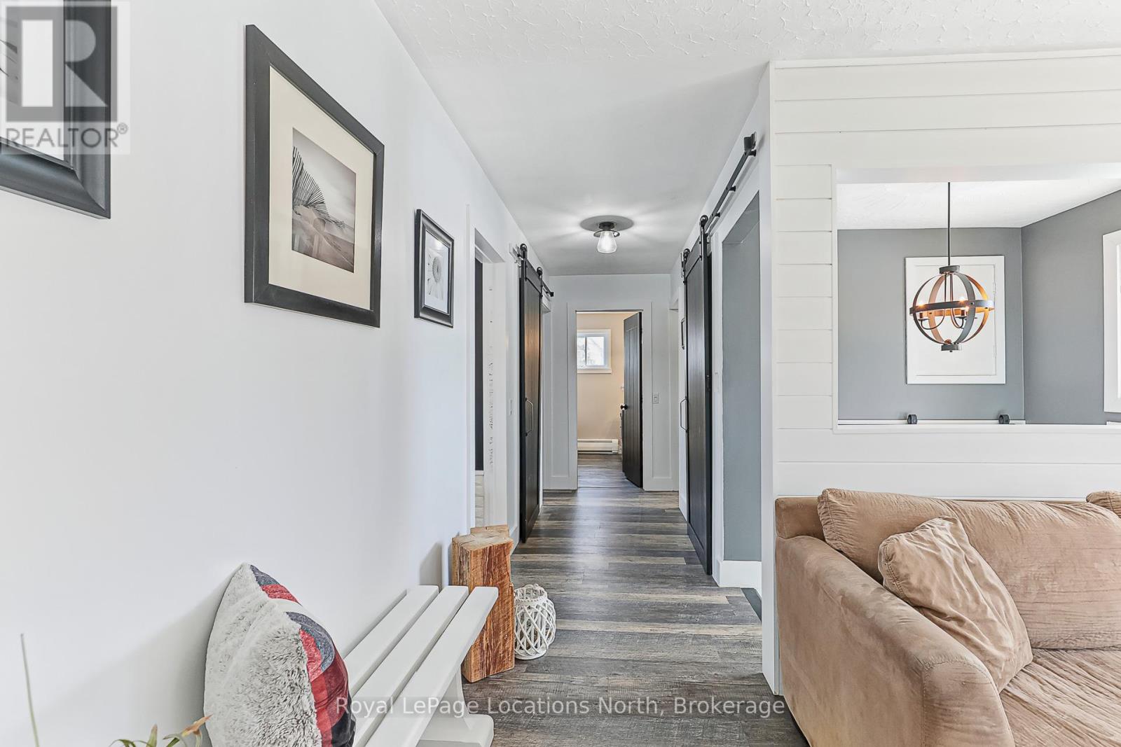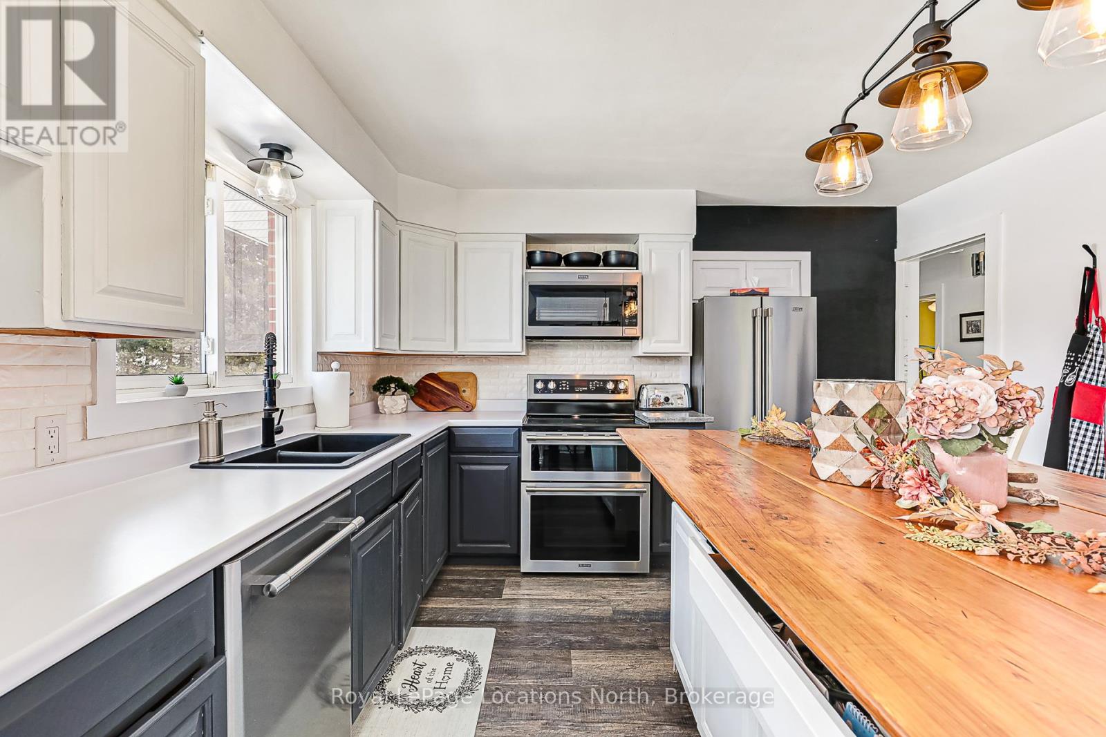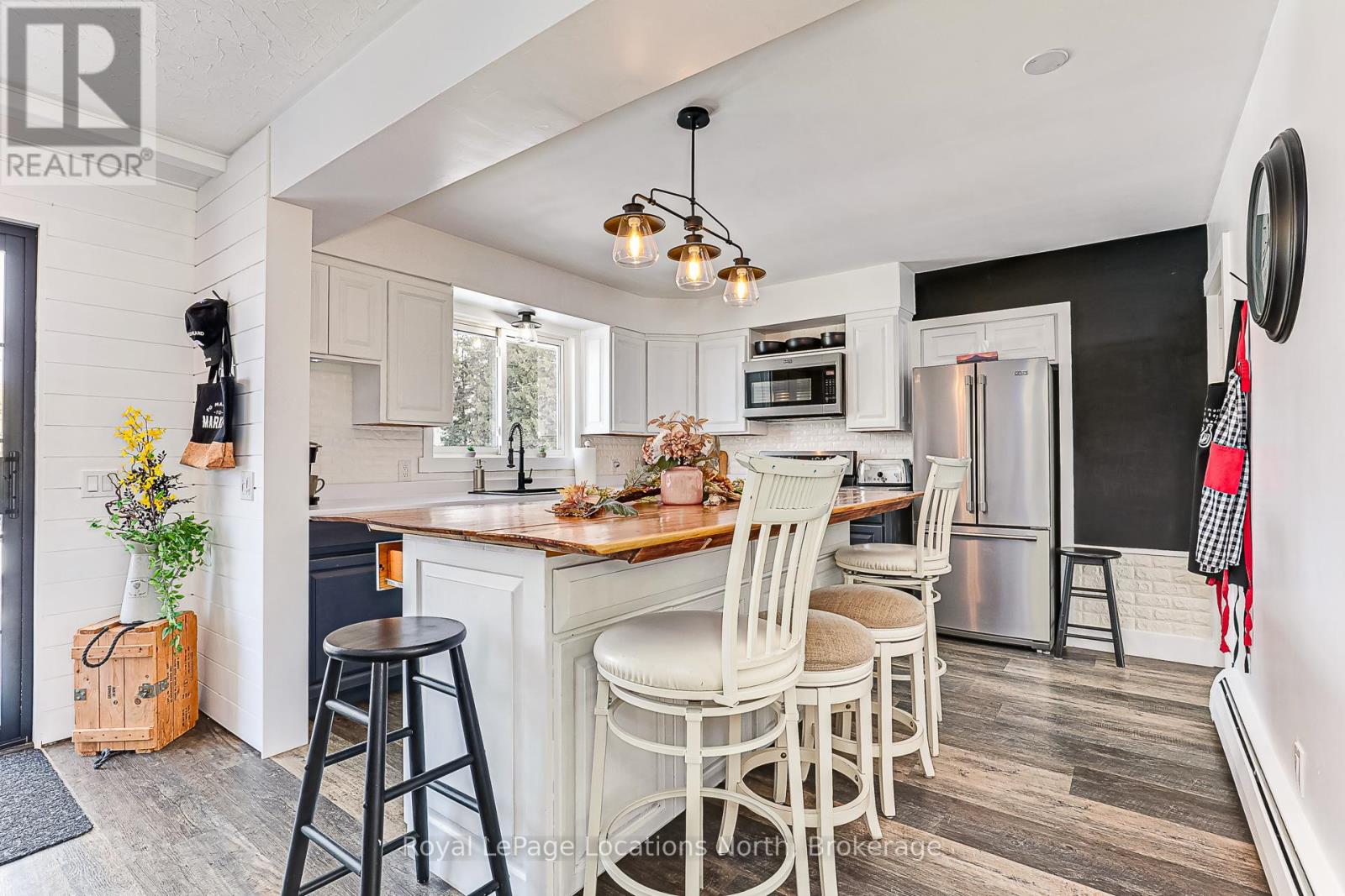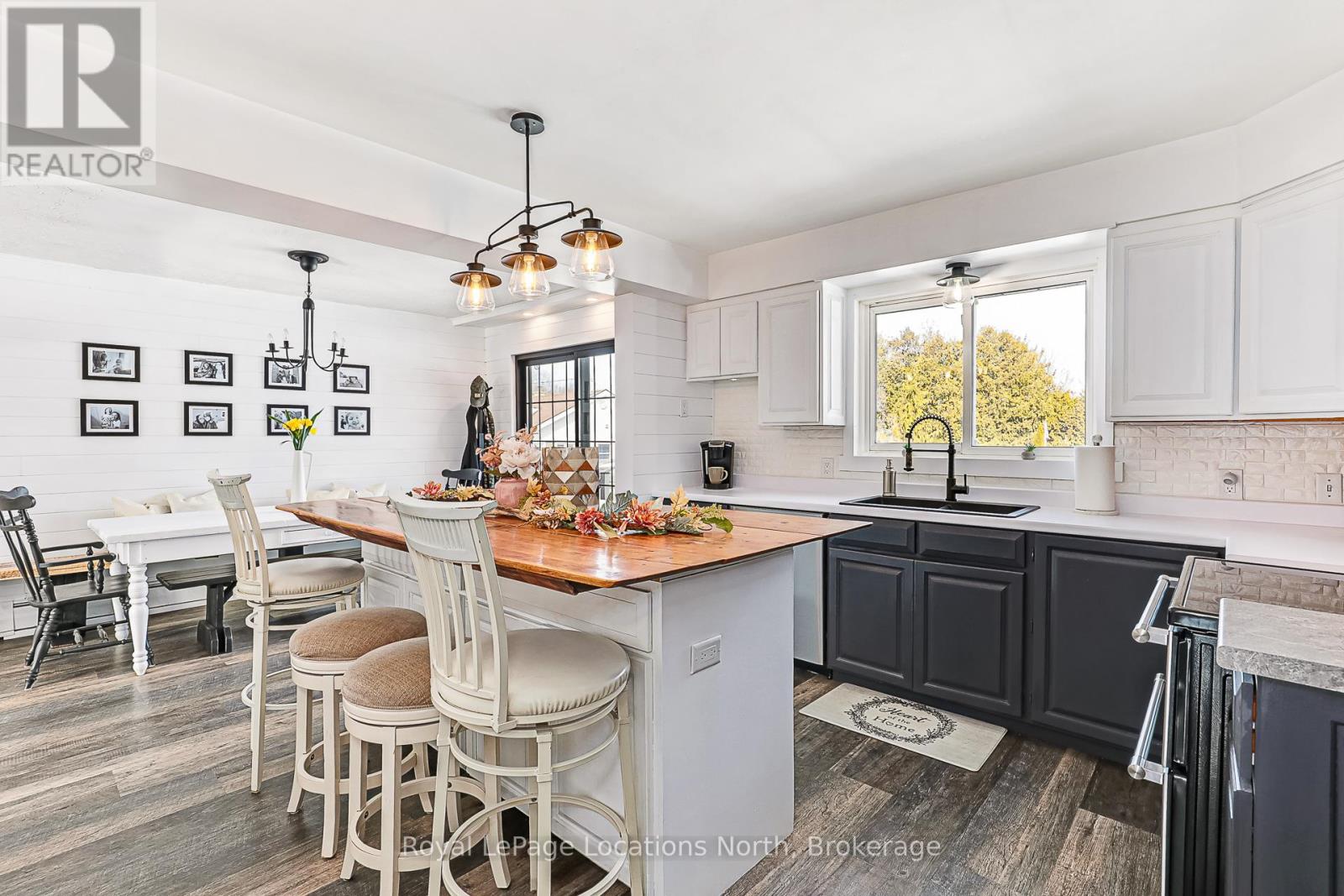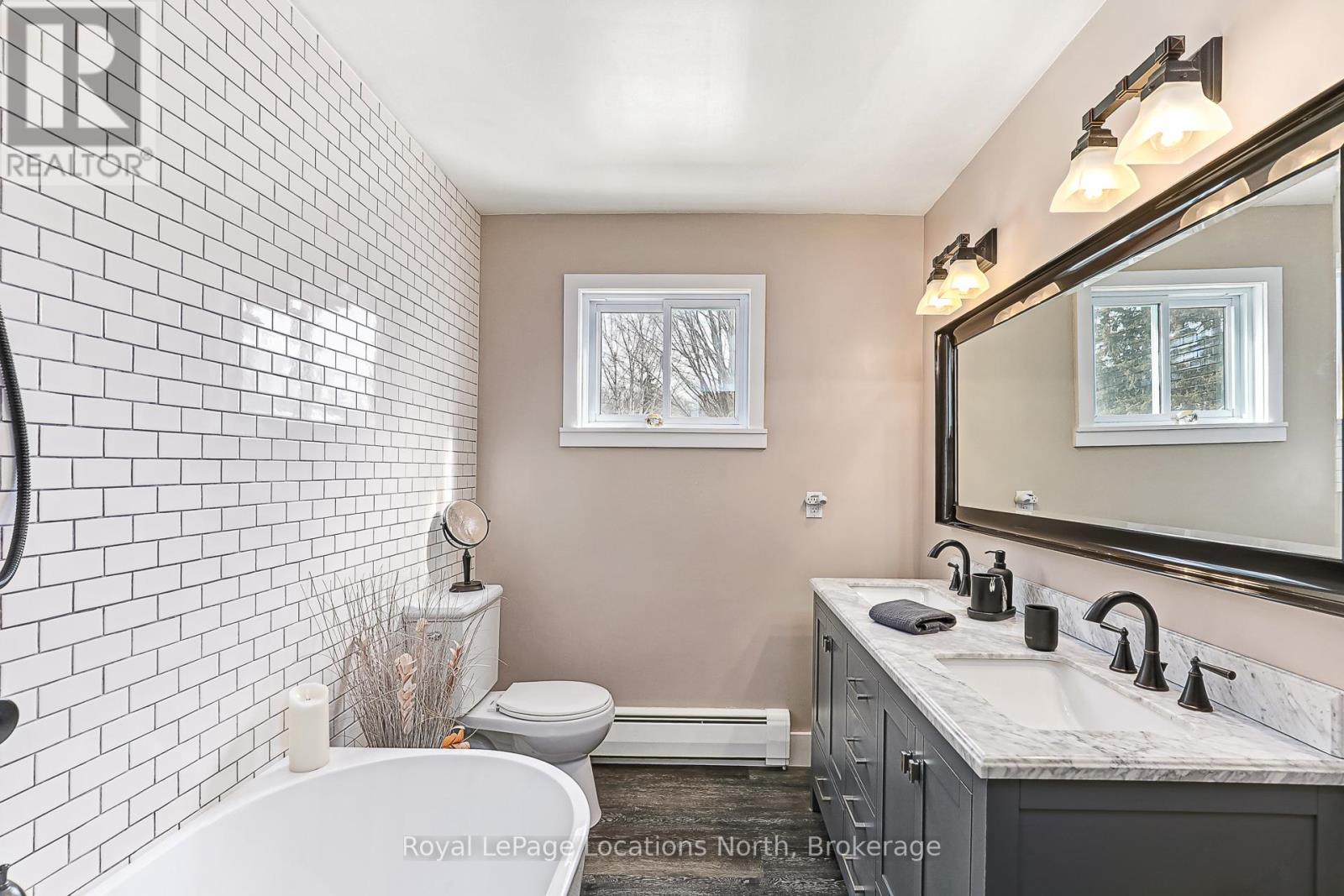 Welcome to this fully renovated gem on one of Meaford's most sought-after streets Montgomery Street, affectionately known as Teachers Row. Homes here rarely come to market, and its easy to see why. This charming 3-bed, 3-bath solid brick home sits on over half an acre, offering in-town convenience, timeless style, and relaxed living just a short stroll to Georgian Bays sandy shores and the local school. Bathed in natural light from sunrise to sunset, the home is perfectly positioned to enjoy both morning rays and evening views from the front and back decks. Curb appeal shines with a paved driveway, natural stone walkway, and heated, partially insulated garage with inside access via the lower-level mudroom. Inside, the open-concept kitchen and dining area impresses with a custom handcrafted island, solid wood cabinetry, and Maytag True Fingerprint-Resistant appliances. Step through the walkout to your fully fenced backyard, ideal for entertaining or taking in the seasonal Bay views. The main floor features a spacious primary bedroom with LG Laundry Tower, a generous second bedroom, and a luxurious 5-piece bath with double sinks and soaker tub. The lower level includes a private third bedroom with 3-piece ensuite (in-floor heat, rainhead shower, custom vanity), a second kitchenette, cozy living area with electric fireplace, and separate entrance ideal for guests or income potential. A bonus 380 sq ft family room features a gas fireplace and its own 3-piece bath with in-floor heating and rainhead shower, perfect for movie nights or playtime. Outside, enjoy stone landscaping, a sand pad with drainage for pool or firepit, 30AMP RV hookup, and generator rough-in all ready for year-round enjoyment. This is Meaford living at its best. (id:46441)