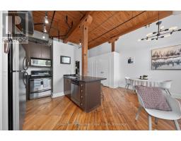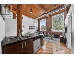 $520.88 MonthlyAuthentic loft living in the heart of Guelph. Located in the highly desirable Mill Lofts, this corner unit is a one-bedroom, one-bathroom. it showcases the timeless appeal of true industrial design paired with thoughtful modern updates.Rich exposed brick walls set the tone throughout the space, adding warmth, texture, and undeniable character you simply won't find in newer builds. The open-concept layout is complemented by high ceilings and oversized windows, creating a bright and inviting atmosphere.The proffesionally remodeled bathroom by Urban Uplift, delivers a fresh, contemporary feel with updated finishes designed for everyday comfort.The kitchen flows seamlessly into the living area, making it ideal for both relaxed living and entertaining. Every corner of this unit reflects a balance of historic charm and practical functionality.Set in one of Guelph's most vibrant neighbourhoods, you're just steps to the GO Station, downtown amenities, and scenic trails along the Speed River-perfect for those who value both convenience and lifestyle. (id:46441)