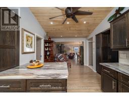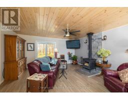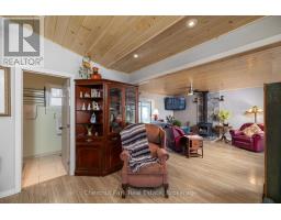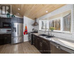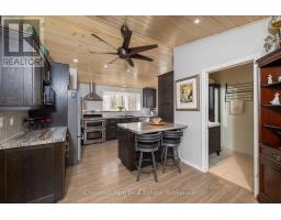 Charming Year-Round Home or Cottage Just Steps from Miller Lake! This beautifully renovated year-round retreat offers the perfect blend of comfort, craftsmanship, and convenience--ideally located just 100 feet from public lake access. Set on a hardwood tree-lined lot, this home has been substantially updated between 2016 and 2018, inside and out. The bright open-concept living area features vaulted pine ceilings, new flooring, and a cozy wood stove accented by custom stonework. The chef's kitchen is a true highlight, showcasing handcrafted Mennonite cabinetry with soft-close drawers and pull-outs, granite double sink, peninsula with bar seating, and stainless appliances including a propane convection double oven. The home provides two spacious bedrooms, including a primary suite with a 2-piece ensuite and walkout to the deck. The second bedroom features custom-built double bunk beds and double insulation for privacy. Additional features include a modern stackable washer/dryer, hallway cabinetry with built-in desk, propane furnace, on-demand hot water, and custom insulated blinds. Enjoy outdoor living at its best with a forest lined deck and hot tub, screened-in hard-roof gazebo, and professionally landscaped yard with gardens, stonework, and dedicated firepit area. A detached garage/workshop offers plenty of storage, while the insulated two-storey bunky--finished in pine with pot lights, ceiling fan, and space to sleep up to six--provides a great space for guests. Meticulously maintained and move-in ready, this charming property is perfect for full-time living or as a four-season getaway. Experience the beauty and tranquility of Miller Lake living--just minutes from boating, fishing, and exploring the wonders of the Bruce Peninsula! (id:46441)