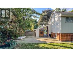 Beautiful Mid-Century home in old Ancaster. Fantastic 1950's back-split; bright, spacious, & designed for family living. Enter and see for yourelf the breathtaking, floor-to-ceiling stone fireplace (gas). Hardwood floors & an impressive wall of windows makes this living room a true stand-out! The main level's open-concept living/dining/kitchen design makes entertaining a breeze. Kitchen/Dining Area features a skylight & convenient walk-out to carport (for easy unloading of groceries!) Step up to the upper level (hallway skylight) with it's 3 bedrooms and family bath (with newer walk-in shower '20), as well as newer broadloom, baseboards & doors ('22). Step down to the 500+ sq ft of the fully-finished lower level featuring a large, bright family room, 2 piece bathroom & laundry room (large utility sink, double closets). With it's own walk-out-and-up separate entrance, the possibilities for this lower level are many! Perhaps a future in-law suite... Office or whatever suits! Of note: roof reshingled '25; furnace, a/c, family room windows '17. Eavestroughs & gutter guards '19. Reach out for full list of updates. This home has been meticulously maintained. With it's deep set-back from the street, this beautiful tree-canopied property offers both privacy & many areas to relax, entertain & play! From the front patio to the large rear garden patio, this pool-sized, fully-fenced garden is just what you'be been looking for. Plenty of parking on long drive and carport. Close to schools, walk to the park, recreational path & movie theatre. Meadowlands has all your shopping needs close by, excellent dining choices await you in the Village of Ancaster, and easy access to 403 and The Linc. Embrace all that Ancaster has to offer with this charming residence at 129 Oneida Blvd - your future home awaits! (id:46441)