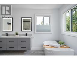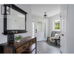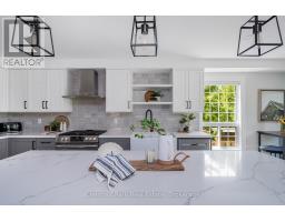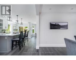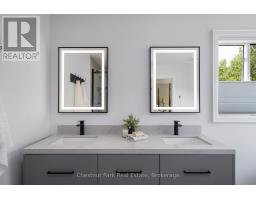 Welcome to 13 Brooke Avenue in Collingwood's sought-after Georgian Meadows neighbourhood. Backing onto the trail with a private treed buffer, this 4-bedroom, 3.5-bathroom home offers over 3,000 sq ft of finished living space and has been extensively updated in 2021. The main floor was fully renovated with engineered hardwood, tile foyer, a gourmet Kraemer Kitchen with quartz counters, updated powder room, custom fireplace surround and shelving, and premium fixtures from Georgian Design. Additional updates completed throughout the home include new trim, interior doors with upgraded hardware, fresh paint, pot lights, designer light fixtures, and dimmable light switches. Upstairs, the luxurious primary suite features a walk-in closet and spa-like ensuite with in-floor heating, freestanding soaker tub, double vanity, and glass shower. The updated family bathroom also includes in-floor heating, plus an upstairs laundry room. The fully finished lower level includes a large rec room, full bath, and storage. Outside, enjoy a back deck with hot tub and dining space, a double garage, and easy access to trails, parks, Curries' Farm Market and Fisher Fields. (id:46441)