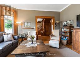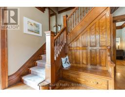 UNPARALLELED CENTURY HOME Gracefully Situated on a Picturesque Tree-Lined Street. Lovingly Maintained and Cherished by only Two Families over the past 125 years, this Stately Residence Showcases Exceptional Original Millwork and Timeless Character throughout. The Grand Foyer features an Impressive Staircase setting the tone. The Main Floor lends itself to a Parlour-Style Living Room with cozy Gas Fireplace, Three-Season Sunroom, Formal Dining Room with built-in shelving and Elegant Pocket Doors, and a Beautifully Updated Kitchen with Custom Cabinetry, Granite Countertops, and Breakfast Bar. An additional Den/Entry and 2-piece Bath complete the Main Level. Quaint Outdoor Living Spaces include an Extensive Covered Front Porch and a Private Backyard with an Expansive Covered Cut Flagstone Patio thoughtfully designed to compliment this era highlighted with Period-Inspired Woodwork and Columns, complete with an Outdoor Bar and BBQ area, versatile for both entertaining or relaxing. The Second Level offers a Spacious Landing, Three Large Bedrooms including a Primary with two Deep Closets, a Luxurious 4-piece Bath with Soaker Tub, Glass Walk-in Shower and Heated Floors, plus a Well-Equipped Laundry Room for added convenience. Throughout the home, High Ceilings and Large Windows fill the space with Natural Light. The full insulated Attic presents exciting potential for additional living space, while the Lower Level offers a Partially Finished Living Space, Work Room, and Generous Storage as well Walk up Access to the rear yard. Ideally located within walking distance to downtown amenities, including restaurants, theatre, library, market, harbour, and Kelso Beach. Timeless Elegance Meets Modern Living----this truly is a Rare Century Home Offering. (id:46441)