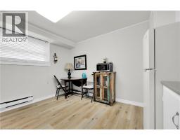DRASTICALLY REDUCED TO SELL and CHEAPER THAN RENT!!! Welcome to this nicely updated, move-in ready, 1 bedroom unit with quality vinyl windows in every room, in an unbeatable and extremely desirable location, directly across from Spencer Smith Park, Spencer's at the Waterfront, and the Art Gallery of Burlington, and literally steps to the lake, trails, hospital, and downtown Burlington, and only a minute to the QEW, 403 and 407. This unit is on the first floor, has spacious principal rooms, including the living room, large eat-in kitchen, and primary bedroom, and has lots of quality updates throughout. Updates include ALL NEW in 2024: luxury wide plank vinyl flooring and 4 baseboards throughout, updated 4-piece bathroom with new vanity, countertop/sink, sink faucet, mirror, light fixtures, showerhead, and toilet, refreshed white kitchen cabinetry professionally painted inside and out, new fridge and stove, portable AC unit, and lighting, and freshly painted throughout. This unit shows 10+++. The complex has a nice community feel, is very quiet, well maintained, and has a great condo board. Complex amenities also include visitor parking, onsite laundry, and bike storage. The low monthly fee includes PROPERTY TAX, water, cable tv, unlimited high-speed internet, and storage locker. Optional parking space is $625/year. 2nd space may be available if needed. No dogs and no rentals/leasing. Don't wait and miss this opportunity for affordable living, in this very nicely updated unit, directly across from the lake and just about every other amenity! Welcome Home! All furniture negotiable and less than 2 years old. Quick closing available! (id:46441)