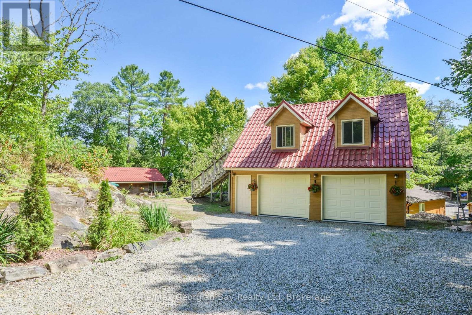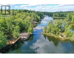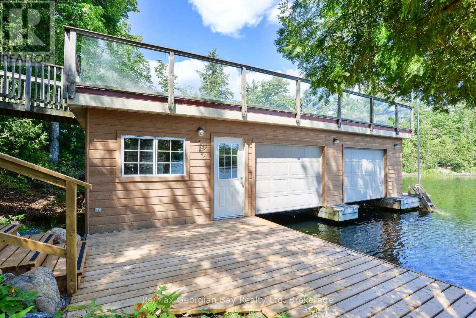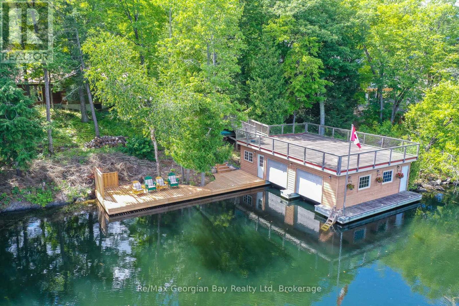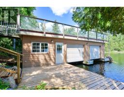 Wow! First time offered! This one has it all! Peacefulness, beautiful scenery and beautiful water views, deep water swimming at 14 feet off the dock, 3 bedrooms, 2 bathrooms Viceroy style cedar cottage with detached double car garage featuring loft family room/4th bedroom and a 2PC bathroom and to top if all off an oversized double boathouse with 2 boat lifts and a separate workshop and storage area along with a roof top deck to enjoy the stunning views of Six Mile Channel on Gloucestor Pool. The first great feature is the paved private year round road all the way to the cottage or make this your year round home! The garage in insulated and heated with a propane heater, 2 garage door openers and the main cottage features upgraded insulation, open concept with cathedral ceiling in the living room overlooking the water, a wood stove for the chilly evenings, separate dining area that overlooks the water, good amount of cupboards, 2 bathrooms, main floor laundry and wow the master bedroom view to wake up to is to die for! There is also a lovely natural fed fish pond! Come check this beauty out as you will not be disappointed with this stunning property and all it has to offer. Call today to book your personal viewing! (id:46441)