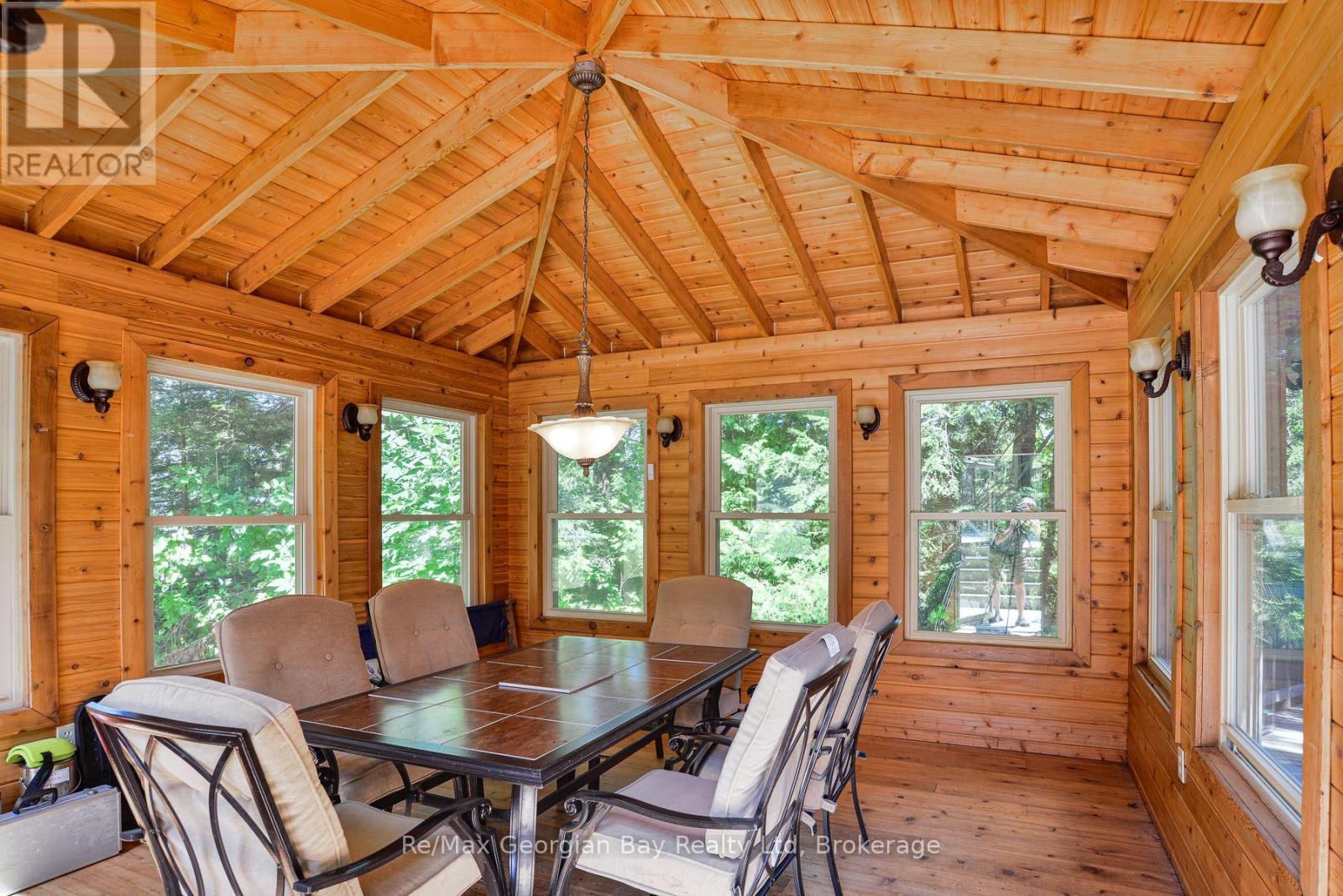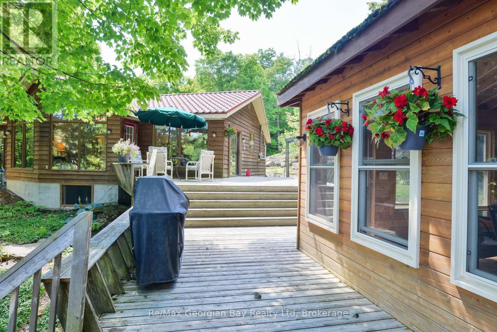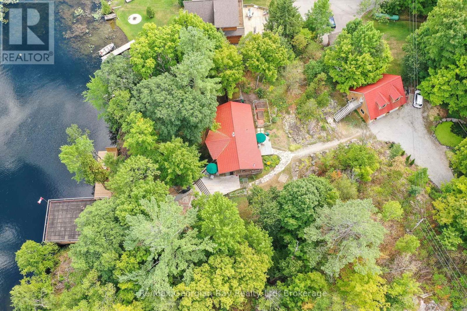 Wow! First time offered! This one has it all! Peacefulness, beautiful scenery and beautiful water views, deep water swimming at 14 feet off the dock, 3 bedrooms, 2 bathrooms Viceroy style cedar cottage with detached double car garage featuring loft family room/4th bedroom and a 2PC bathroom and to top if all off an oversized double boathouse with 2 boat lifts and a separate workshop and storage area along with a roof top deck to enjoy the stunning views of Six Mile Channel on Gloucestor Pool. The first great feature is the paved private year round road all the way to the cottage or make this your year round home! The garage in insulated and heated with a propane heater, 2 garage door openers and the main cottage features upgraded insulation, open concept with cathedral ceiling in the living room overlooking the water, a wood stove for the chilly evenings, separate dining area that overlooks the water, good amount of cupboards, 2 bathrooms, main floor laundry and wow the master bedroom view to wake up to is to die for! There is also a lovely natural fed fish pond! Come check this beauty out as you will not be disappointed with this stunning property and all it has to offer. Call today to book your personal viewing! (id:46441)