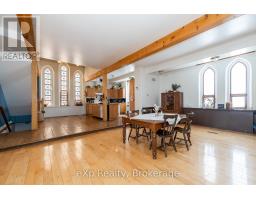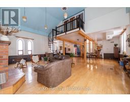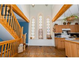 Own a piece of history with this stunning, professionally converted Knox Church home, perched atop scenic Scotch Mountain on half an acre, surrounded by picturesque farmland. Last renovated in 2008, this unique residence seamlessly blends historic charm with modern comfort, featuring breathtaking vaulted ceilings, large stained glass windows, and rich hardwood floors. The open-concept kitchen, living, and dining area is anchored by a striking wood-burning fireplace, creating a warm and inviting atmosphere. A spacious mudroom offers practicality at the entrance, while the thoughtfully designed layout includes three bedrooms, two full baths, and the convenience of second-floor laundry. Ideally located with easy access to Meaford, Owen Sound, the Blue Mountains, and Markdale, this one-of-a-kind home is perfect for those seeking character, tranquility, and timeless beauty (id:46441)